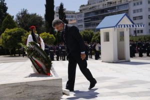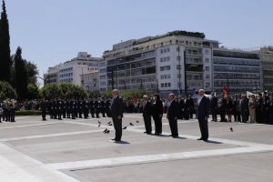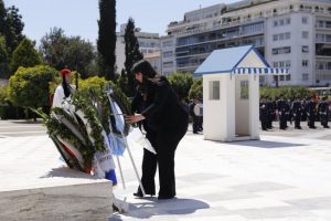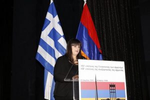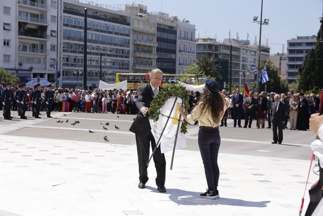 Στη συνέχεια ακολούθησε πορεία και Κατάθεση Στεφάνων στο Μνημείο του Άγνωστου Στρατιώτη στη μνήμη των θυμάτων της Γενοκτονίας του Αρμενικού λαού το 1915.
