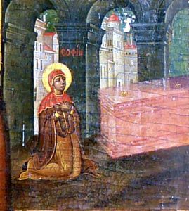 Σε αυτό το άρθρο θα παρουσιάσω περιγραφικά την εφέστια εικόνα του ναού της Αγίας Σοφίας, που βρίσκεται στο σημερινό τέμπλο. Για λόγους χωρητικότητας δεν θα αναφερθώ στο συναξάρι της Αγίας Σοφίας και των τριών θυγατέρων της σε σχέση με τα εικονιζόμενα μαρτύριά τους, λόγω που αυτός αναφέρθηκε σε προηγούμενο άρθρο, στο 1ο μέρος.