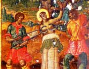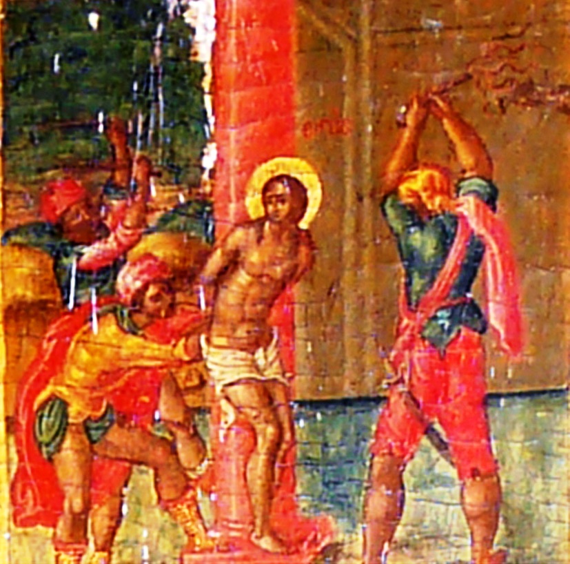 Δεξιά από τη μορφή της Αγίας Σοφίας υπάρχουν σε κάθετη στοίχιση άλλες τρεις μικρογραφίες στις ίδιες διαστάσεις με αυτές που βρίσκονται αριστερά της και εικονίζουν σκηνές μαρτυρίου. Συγκεκριμένα : Στην πρώτη πάνω δεξιά από το σώμα της Αγίας εικονίζεται : «Η μαστίγωση της Αγίας Ελπίδος με βούνευρα», ακολουθεί στην κάθετη στοίχιση η εικονογραφία με θέμα, «Η απότμησις των μαστών της Αγίας Πίστεως» και η τρίτη μικρογραφία εικονίζει το θέμα, «Η κοίμηση της Αγίας Σοφίας, ενώ προσεύχεται έμπροσθεν του κιβωρίου που περιέχει τα ιερά λείψανα των θυγατέρων της». Σύμφωνα με το συναξάρι της Αγίας, αφού τελείωσε το μαρτύριο των τριών θυγατέρων της, τις ενταφίασε και τρεις μέρες αργότερα η μητέρα τους Σοφία, ήρθε στο μνήμα τους. Έκλεισε τα μάτια της και παρέδωσε την ψυχή της στα χέρια του Θεού με τα παρακάτω λόγια. «Αγαπημένα μου παιδιά, δεχτείτε τη μητέρα σας εκεί , όπου σείς αναπαύεστε»