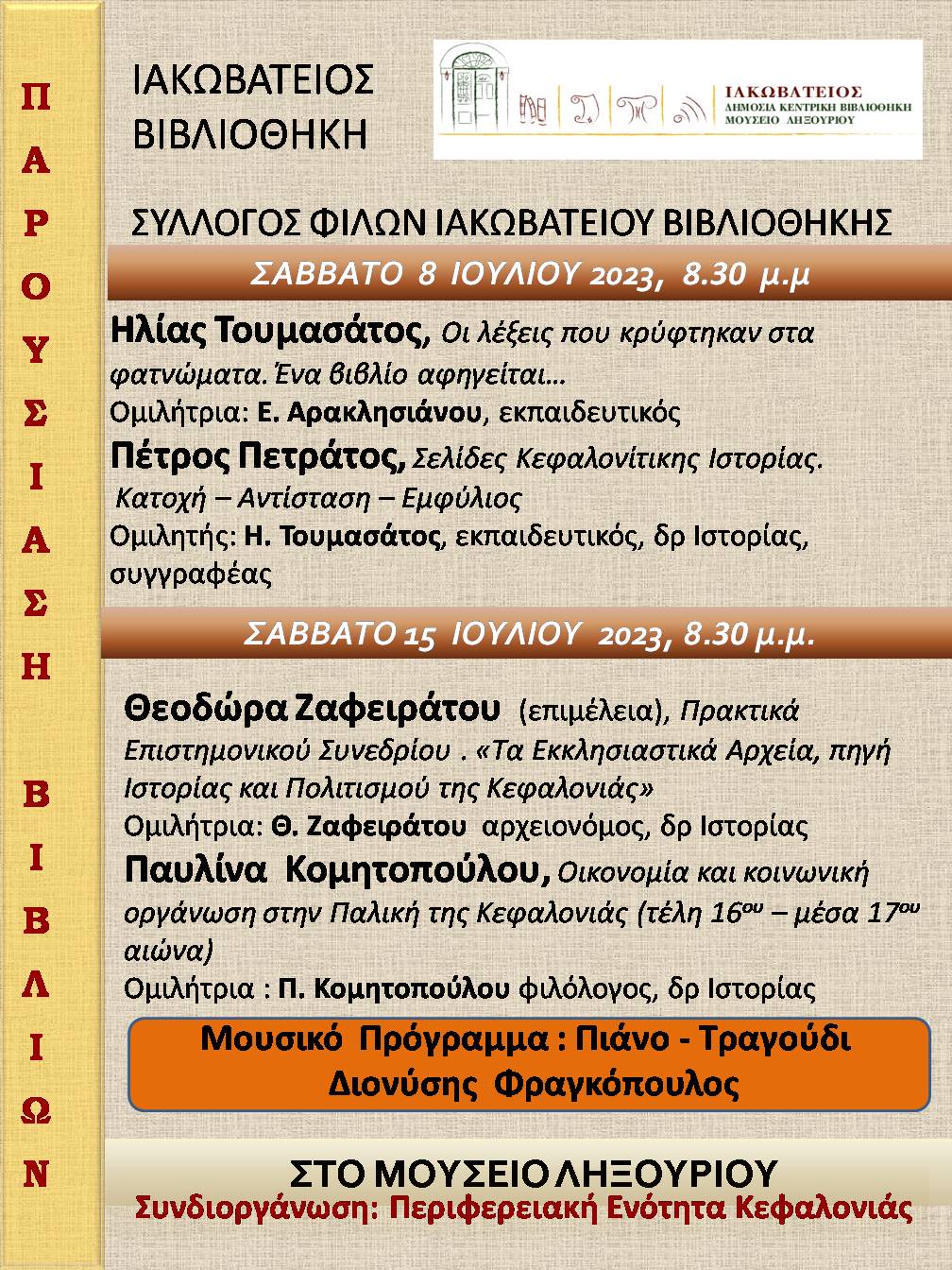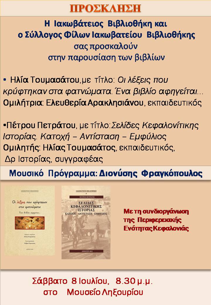 Η Ιακωβάτειος Βιβλιοθήκη σας προσκαλεί στην παρουσίαση βιβλίων.