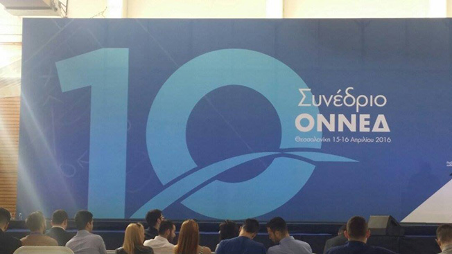 Η ΜΕΓΑΛΥΤΕΡΗ ΠΟΛΙΤΙΚΗ ΟΡΓΑΝΩΣΗ ΝΕΩΝ ΣΤΗΝ ΧΩΡΑ ΜΑΣ ΒΓΑΙΝΕΙ ΜΠΡΟΣΤΑ ΜΕ ΤΟ ΣΥΝΘΗΜΑ «Παίζουμε επίθεση και φτιάχνουμε τη μαγιά της νέας εποχής». Ο πρόεδρος της ΟΝΝΕΔ, Vasilis Georgiadis που έδωσε στο βήμα του 10ου Τακτικού Συνεδρίου της ΟΝΝΕΔ.