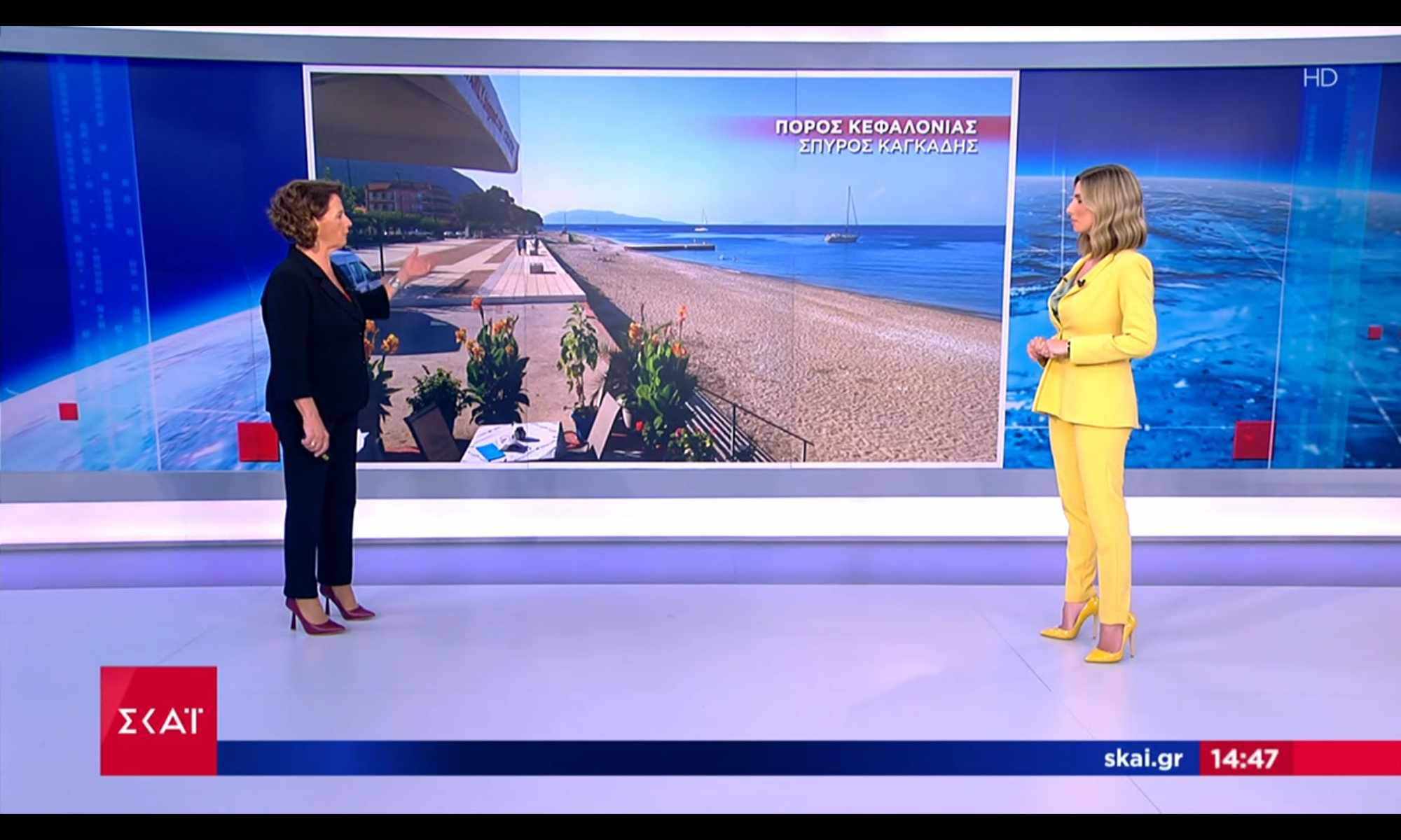 Ευχαριστούμε ολόψυχα την αγαπητή και έγκυρη μετεωρολόγο του ΣΚΑΪ Χριστίνα Σούζη που νωρίτερα σήμερα στο Μεσημβρινό Δελτίο Ειδήσεων με την Λένα Φλυτζάνη αυτού του μεγάλου πανελλήνιας εμβέλειας τηλεοπτικού σταθμού επέλεξε να προβάλλει μια άκρως καλοκαιρινή φωτογραφία μου από την πανέμορφη Κεντρική Πλατεία και Παραλία του Πόρου της Κεφαλονιάς!