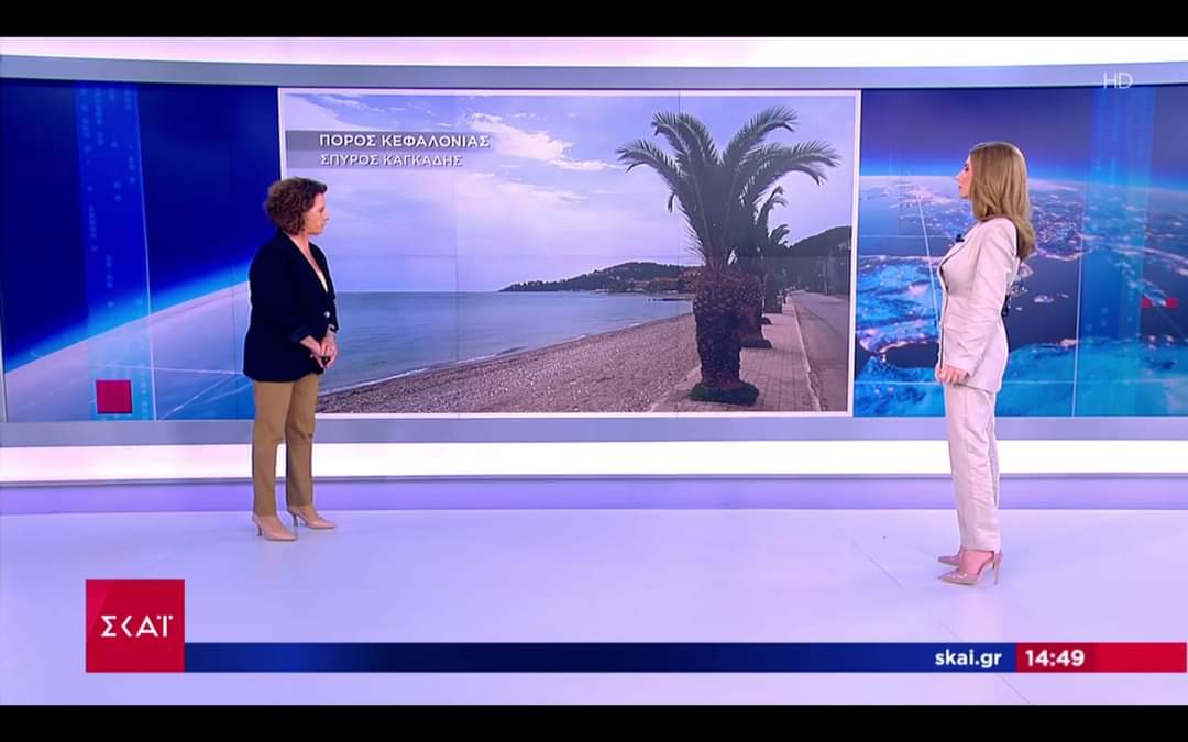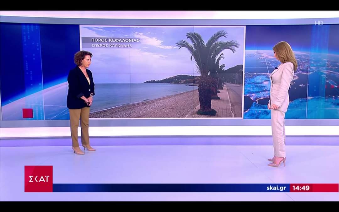 Ευχαριστούμε ολόψυχα την έγκυρη μετεωρολόγο του ΣΚΑΪ Χριστίνα Σούζη που νωρίτερα σήμερα στο δημοφιλή Μεσημβρινό Δελτίο Ειδήσεων του τηλεοπτικού σταθμού με την έγκριτη παρουσιάστρια Λένα Φλυτζάνη παρουσίασαν στο πολυπληθές πανελλήνιο κοινό τους φωτογραφία μου από την πανέμορφη Παραλία Άγιος Γρηγόρης του Πόρου της Κεφαλονιάς μας!