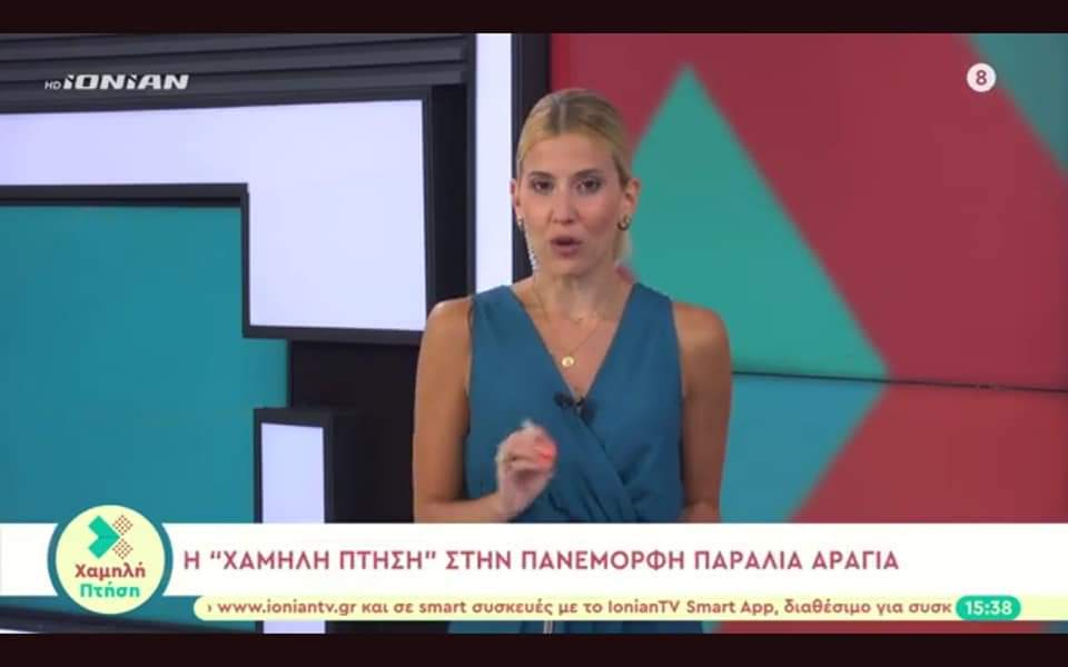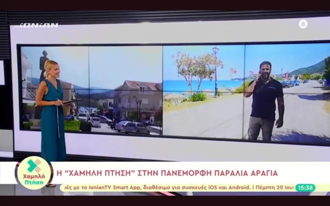 Ευχαριστούμε θερμά την αξιολογότατη παρουσιάστρια και δημοσιογράφο Αγγελική Σπυροπούλου που σήμερα ανήμερα των γενεθλίων της στην μεσημβρινή εκπομπή του Ionian TV Χαμηλή Πτήση πρόβαλλαν το πανέμορφο νησί μας και ειδικότερα την απαράμιλλης ομορφιάς Παραλία Αράγια (του Πόρου Κεφαλονιάς). Στην συνέντευξη μεταξύ των άλλων αναδύεται η τοποθέτησή των επιχειρηματιών του κλάδου για την τρέχουσα τουριστική περίοδο μέσω της ελαχιστότητος μου.