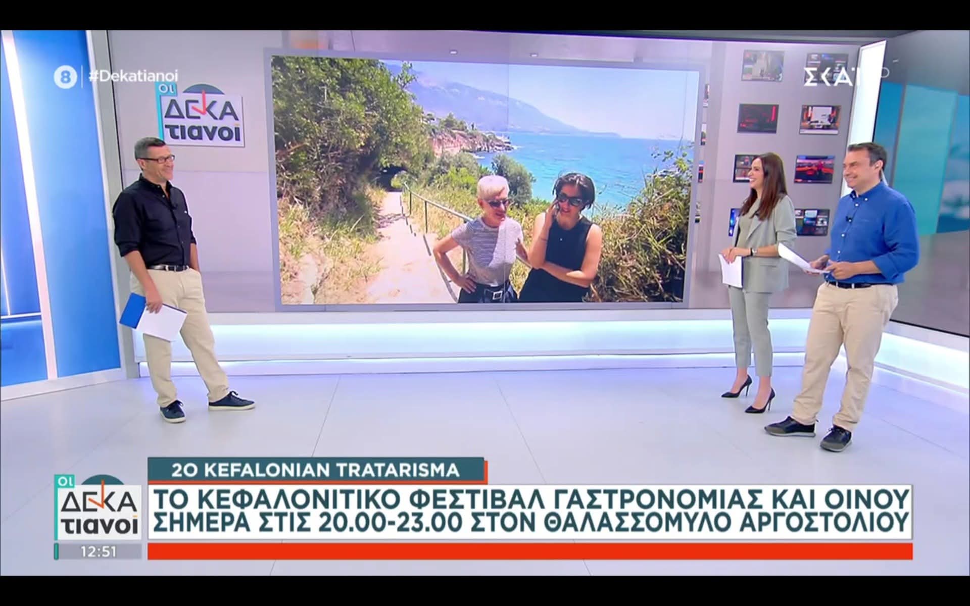 Ακόμα, τα θερμά συγχαρητήρια μας στην τουριστική επιτροπή του Δήμου Αργοστολίου που πρόβαλαν εκτενώς στην εκπομπή του ΣΚΑΪ “Οι Δεκατιανοί” την σπουδαία δράση τους με τίτλο “2ο Kefalonian Tratarisma” το οποίο αποτελεί Κεφαλονίτικο Φεστιβάλ Γαστρονομίας και Οίνου και διεξήχθη την Κυριακή το βράδυ στο Θαλασσόμυλο Αργοστολίου. Στον αέρα της εκπομπής αυτής εμφανίστηκαν οι Ελένη Ψυχούλη και η Ανθεία Κώτση της ιστοσελίδας Cookout.gr!