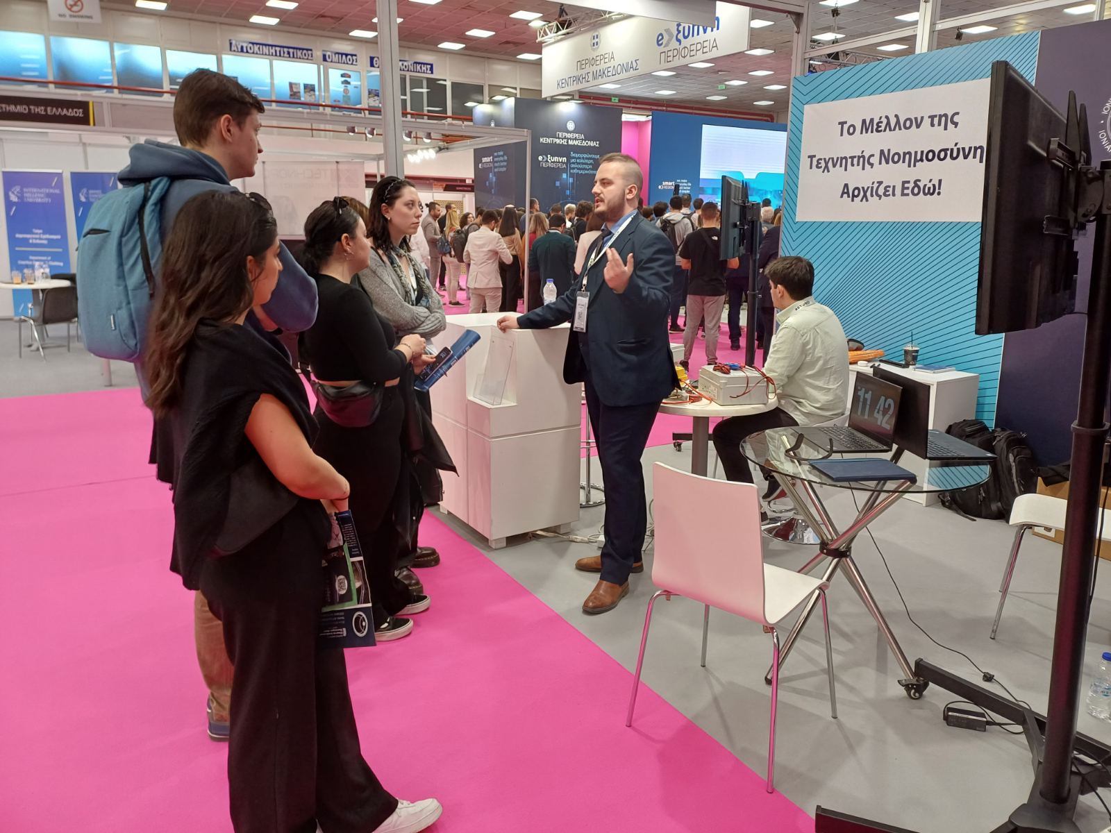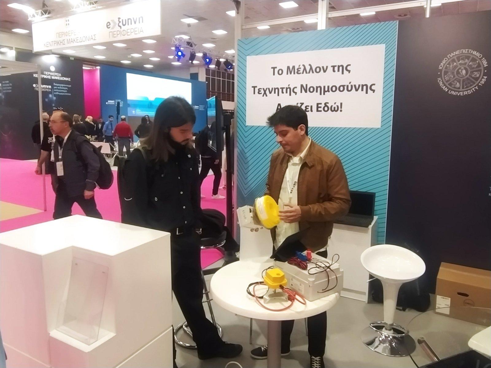 Στο περίπτερο αποτυπώθηκαν οι διάφορες εφαρμογές του Ιονίου Πανεπιστημίου σε ευρεία πεδία όπως η υγεία, οι τέχνες, η κυβερνοασφάλεια και τα συστήματα χαμηλού κόστους. Την έκθεση επισκέφτηκε ο κ. Μιχάλης Μπλέτσας, ερευνητής και διευθυντής πληροφορικής του MIT Media Lab, ο οποίος ενθουσιάστηκε ιδιαιτέρως από την εφαρμογή για την πρώιμη διάγνωση γνωστικών διαταραχών, προϊόν του Εργαστηρίου Βιοπληροφορικής και Ανθρώπινης Ηλεκτροφυσιολογίας του Τμήματος Πληροφορικής.