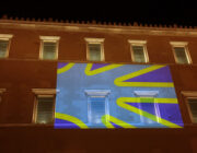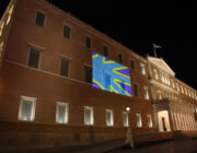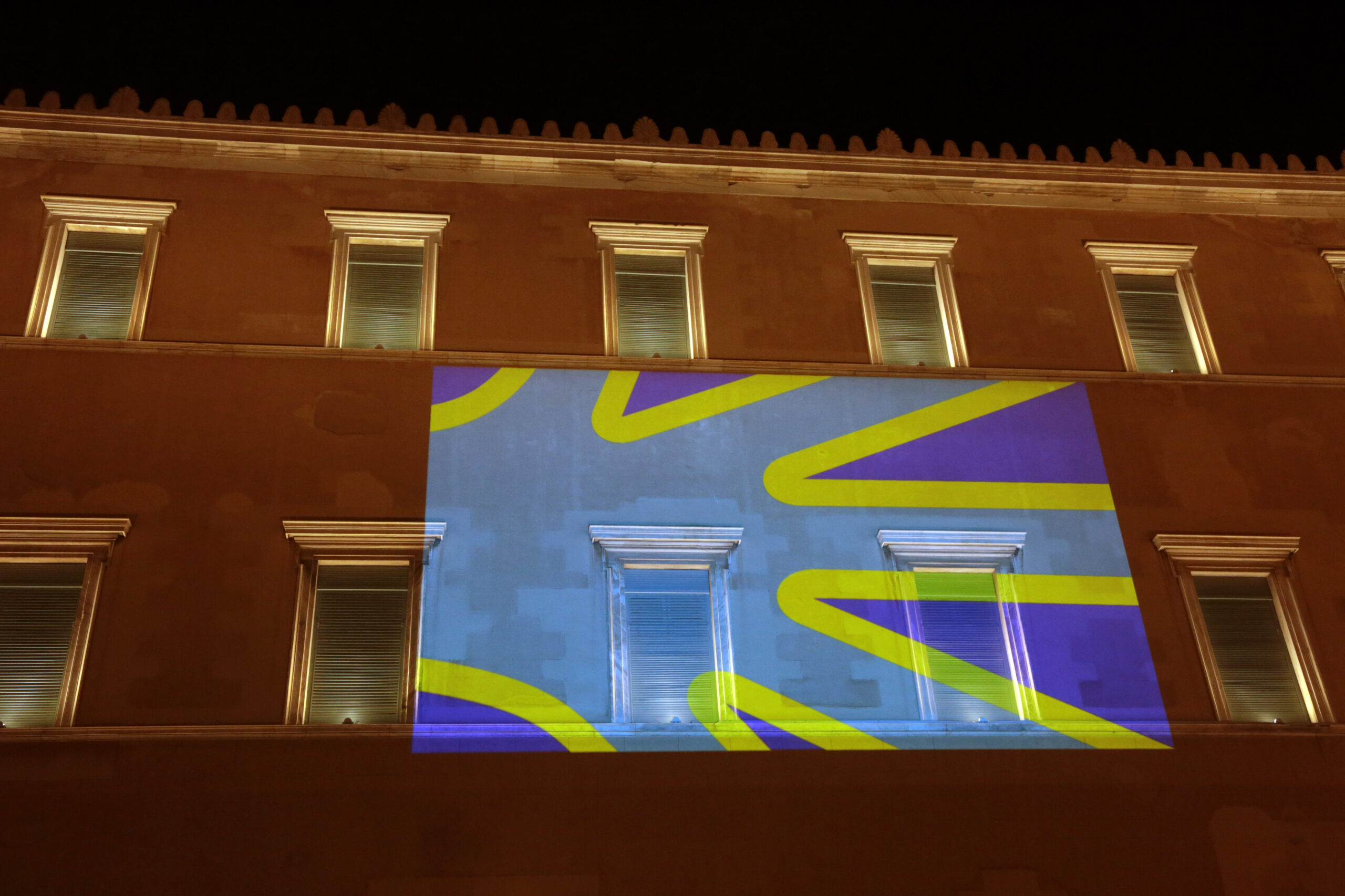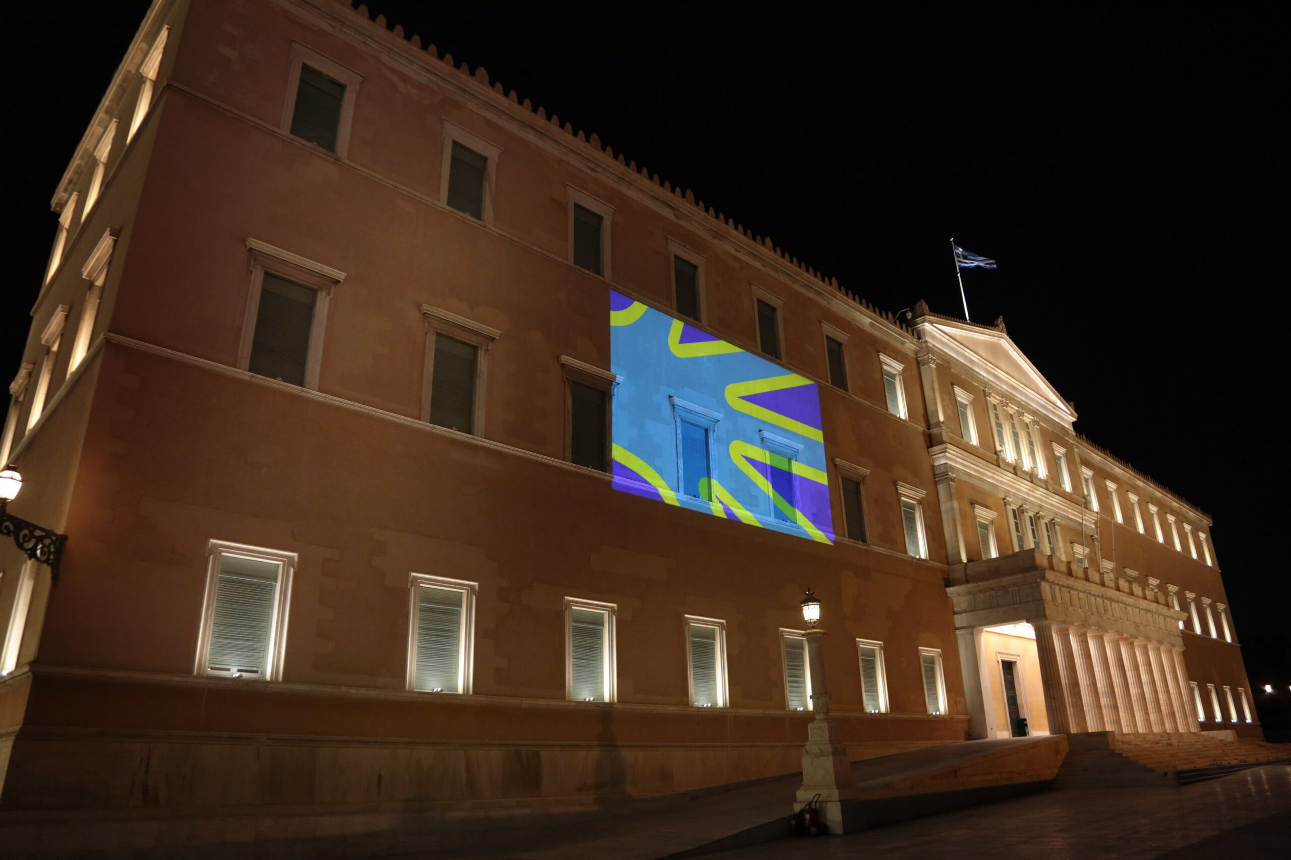 Η πρόσοψη του ελληνικού Κοινοβουλίου φωταγωγείται για την Διεθνή Ημέρα Νοηματικών Γλωσσών