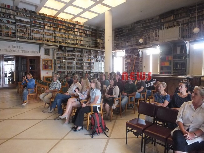 Η συνάντηση έγινε στην Κοργιαλένειο Βιβλιοθήκη, εκεί ήταν ο αντιδήμαρχος Βαγ. Κεκάτος που τους υποδέχθηκε και αντάλλαξαν χαιρετισμούς και απόψεις για την ανταλλαγή αυτή. Οι ομιλίες βέβαια ήταν στα Γερμανικά και Αγγλικά. Όμως ο κ. Κεκάτος είχε την καλοσύνη να μας κάνει δηλώσεις για τη συνάντηση αυτή.