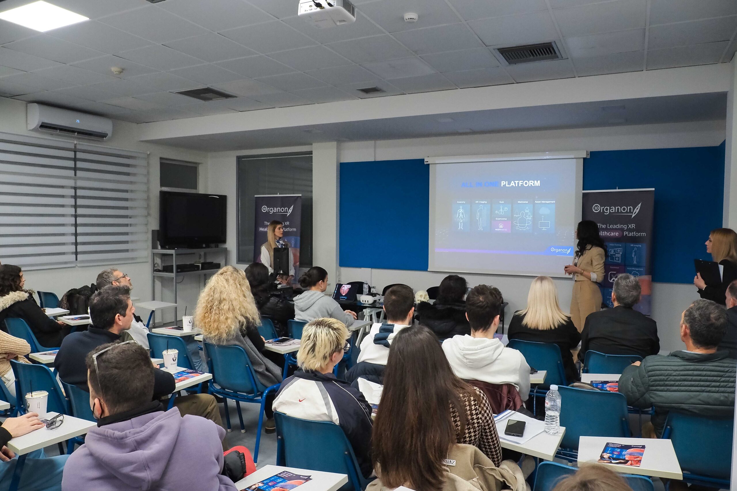 Η παρουσίαση πραγματοποιήθηκε σε ειδικά διαμορφωμένο χώρο των εγκαταστάσεων της ΣΒΙΕ, όπου οι σπουδαστές είχαν την ευκαιρία να έρθουν σε επαφή με την πρωτοποριακή τεχνολογία που μεταμορφώνει τη μελέτη της ανθρώπινης ανατομίας. Με τη χρήση εικονικής πραγματικότητας (VR), το 3D Organon δίνει ζωή στο ανθρώπινο σώμα, επιτρέποντας στους σπουδαστές να εξερευνήσουν σε τρισδιάστατη απεικόνιση τα συστήματα του οργανισμού, να αλληλεπιδράσουν με τα επιμέρους όργανα και να κατανοήσουν τη λειτουργία και τη σχέση τους με τρόπο που ξεπερνά τα παραδοσιακά εγχειρίδια.