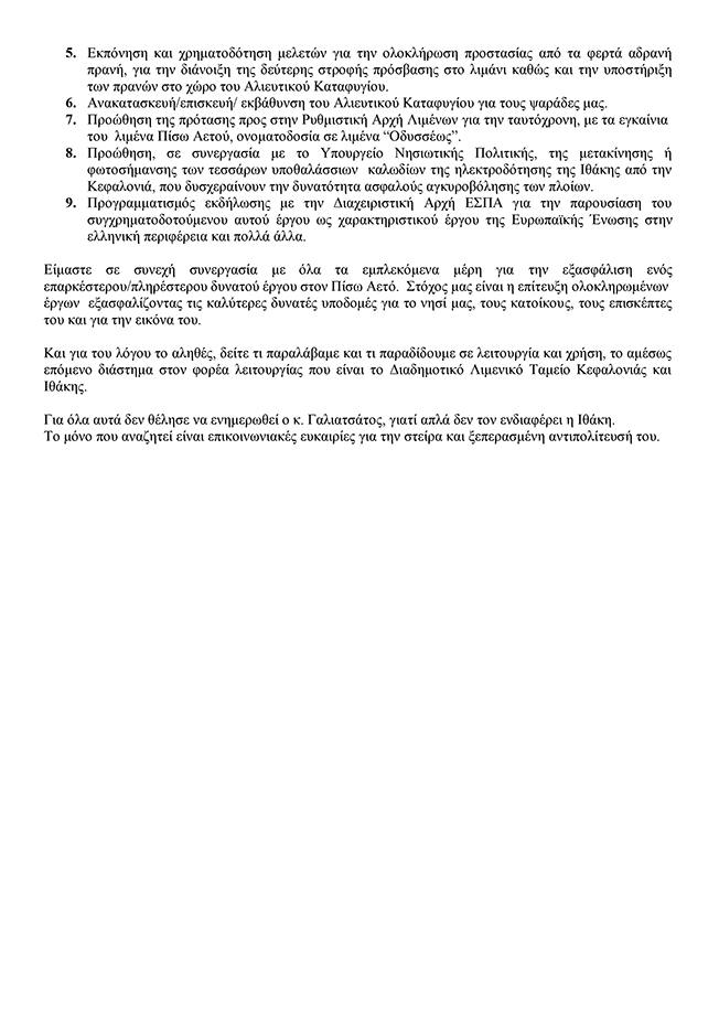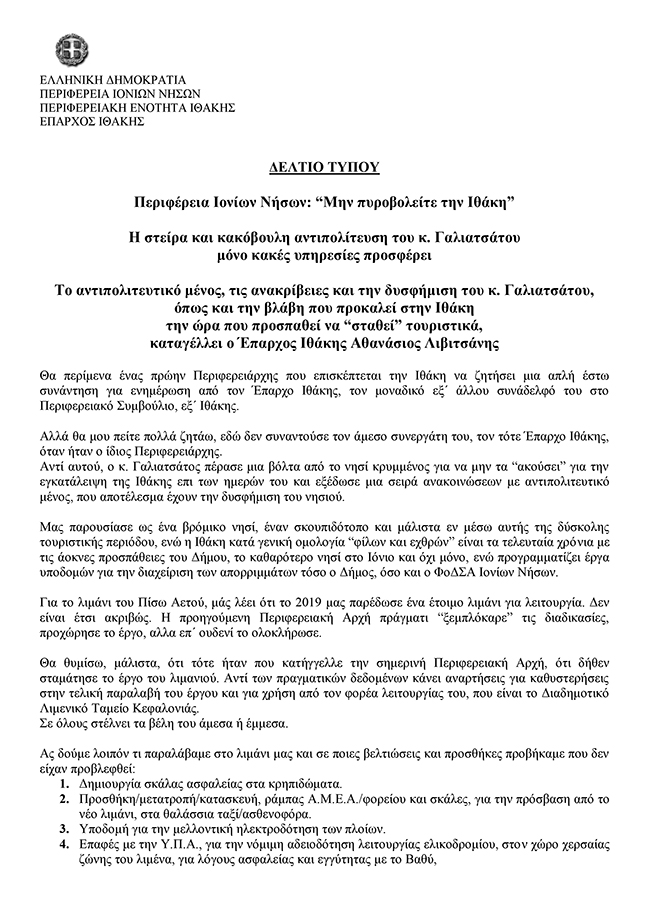 Η στείρα και κακόβουλη αντιπολίτευση του κ. Γαλιατσάτου μόνο κακές υπηρεσίες προσφέρει.