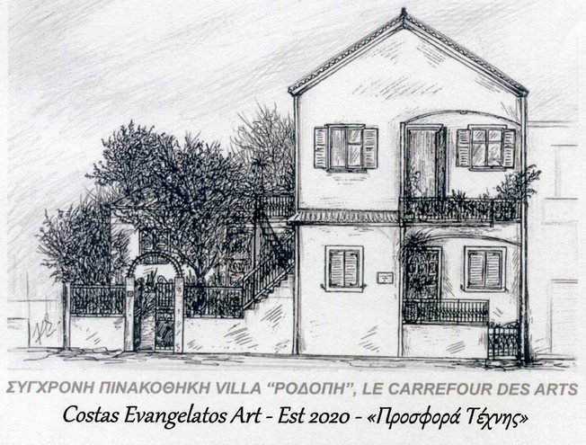 “Προσφιλές καταφύγιο και εκθεσιακός χώρος των εικαστικών μου έργων καθώς και των ντοκουμέντων από τις εκθέσεις και τις performance μου στην Ελλάδα και το εξωτερικό από το 2000 μέχρι σήμερα (σχέδια, φωτογραφίες, video-art, ψηφιακές εικόνες, θεωρητικά κείμενα, έντυπσ και εκδόσεις) όλων γενικά των πολλαπλών μου δράσεων, έχει γίνει και παραμένει για 20 χρόνια η ΣΥΓΧΡΟΝΗ ΠΙΝΑΚΟΘΗΚΗ VILLA «ΡΟΔΟΠΗ» στο Αργοστόλι.