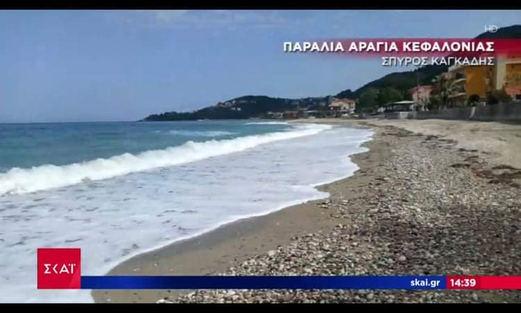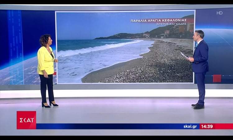 Φωτογραφία μου με την εντυπωσιακή φυσική ομορφιά της Παραλίας Αράγια του Πόρου της Κεφαλονιάς μας, που ήταν ελαφρά κυματώδης, παρουσιάστηκε πριν λίγο πρώτη στο Μεσημβρινό Δελτίο Ειδήσεων της μεγάλης σε τηλεθέαση τηλεόρασης του ΣΚΑΪ στον καταξιωμένο δημοσιογράφο Μάρκο Δεϊμέζη από την πάντα έγκυρη και αγαπητή στον κόσμο μετεωρολόγο Χριστίνα Σούζη!