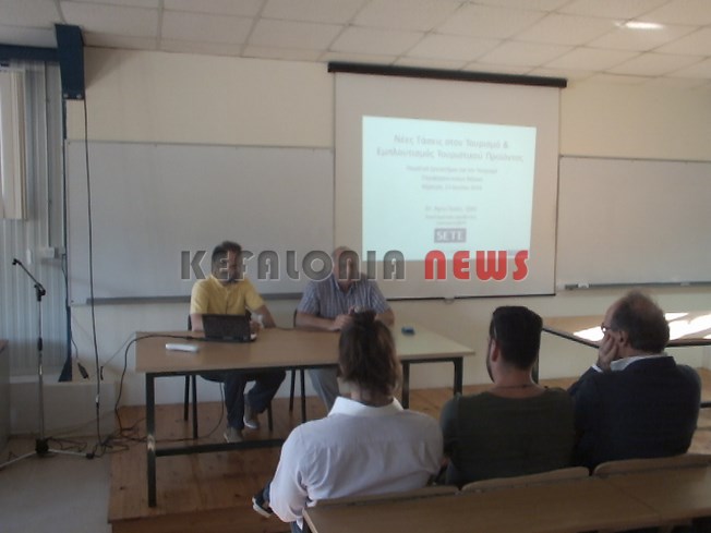 Στην Αίθουσα του ΤΕΙ η συμμετοχή ήταν μικρή,  παρουσίασε τους ομιλητές ο αντιπεριφερειάρχης Τουρισμού κ. Σπ. Γαλιατσάτος – Μίλησαν: Δημ. Μπλούκος, από το Υπουργείο Τουριστικής Ανάπτυξης – Ο Άρης Ίκκος SETE – Δημ. Βατικιώτης και Γιάννης Κωτσής Γιανναράκης. Από την Διαχειριστική Αρχή, εκεί  ήταν ο Αθ. Σπίγγος και η Λίνα Ρούσσου. Θα θέλαμε να επισημάνουμε ότι ήταν φανερή μια μικρή ανοργανωσιά, προτείνουμε,  το ΤΕΙ να ανανεώσει τα κομπιούτερ και τη μικροφωνική εγκατάσταση. Μια πρόταση κάνουμε μην το πάρετε και ….. κατάκαρδα.