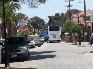 Ο κεντρικός δρόμος είναι κάτι ανάμεσα σε δρόμο ταχείας κυκλοφορίας και ανεξέλεγκτο πάρκινγκ με δυστυχείς κατοίκους και επισκέπτες να προσπαθούν να κινηθούν με τα πόδια χωρίς να τους συμβεί κάποιο ατύχημα. Ιδιαίτερα τραγική είναι η εικόνα των τουριστών που θεωρούν αρχικά ότι βρίσκονται σε πεζόδρομο και στη συνέχεια διαπιστώνουν ανά πάσα στιγμή ότι κινδυνεύουν.