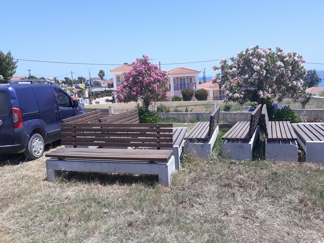 Επίσης δώδεκα (12) τουλάχιστον παγκάκια, που η προμήθεια τους έγινε το προηγούμενο καλοκαίρι, ούτε αυτά έχουν τοποθετηθεί. Βρίσκονται παρατημένα, χορταριάζουν και έχουν βγάλει ρίζες στο χώρο δίπλα στο Αγροτικό Ιατρείο της Σκάλας.