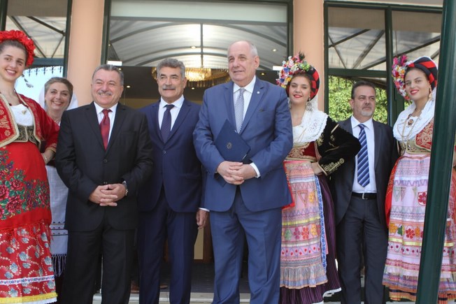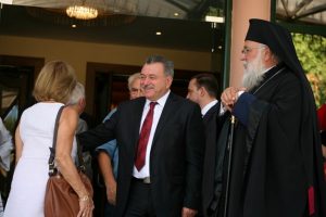 Στην εκδήλωση χαιρετισμό απηύθυναν επίσης ο Δήμαρχος Κέρκυρας Κώστας Νικολούζος και ο Σεβασμιώτατος Μητροπολίτης Κερκύρας, Παξών και Διαποντίων Νήσων κ.κ. Νεκτάριος που εξήρε για ακόμη μία φορά τον Περιφερειάρχη Ιονίων Νήσων κ. Θεόδωρο Γαλιατσάτο, για την πρωτοβουλία να διοργανώσει το 1ο Διεθνές Συνέδριο Αποδήμων Επτανησίων και να τιμήσειτον Αρχιεπίσκοπο Τιράνων, Δυρραχίου και πάσης Αλβανίας κ.κ. Αναστάσιο