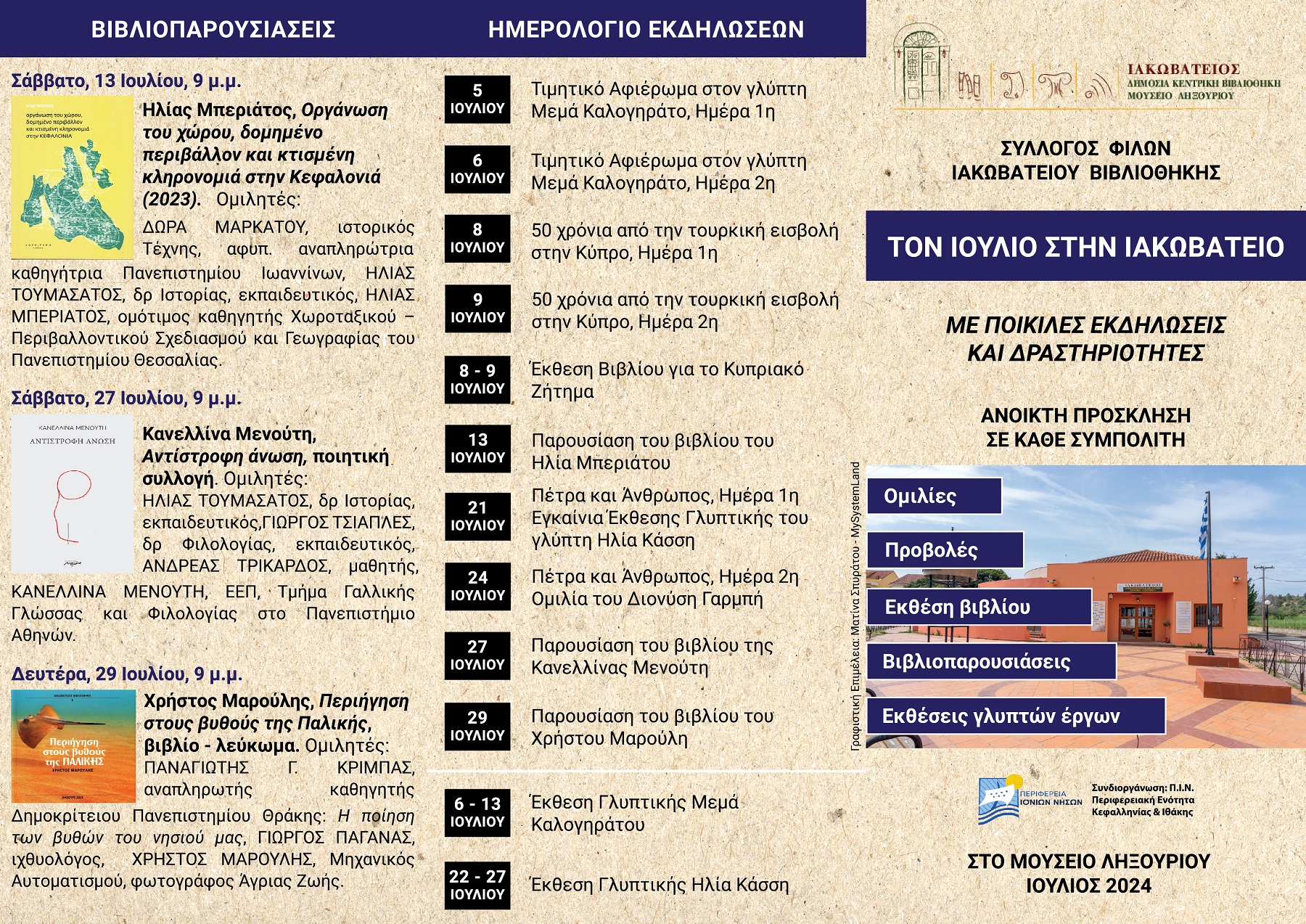 ΙΑΚΩΒΑΤΕΙΟΣ ΒΙΒΛΙΟΘΗΚΗ – ΠΡΟΓΡΑΜΜΑ ΕΚΔΗΛΩΣΕΩΝ ΙΟΥΛΙΟΥ 2024