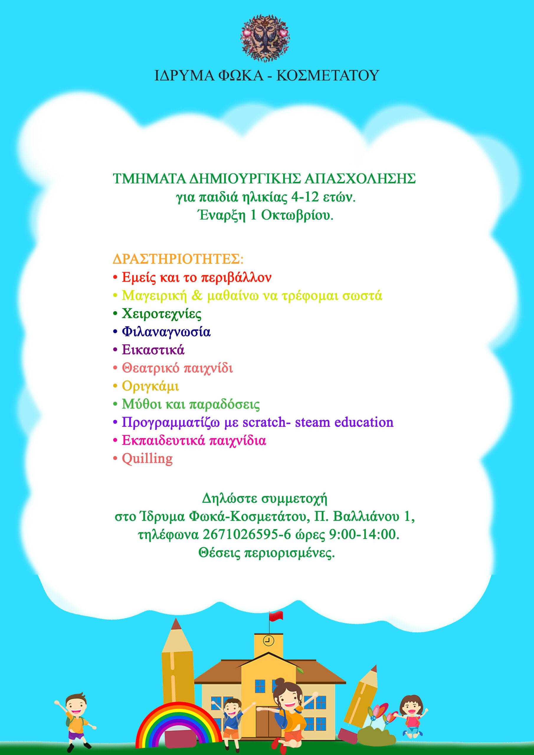 ΙΔΡΥΜΑ ΦΩΚΑ – ΚΟΣΜΕΤΑΤΟΥ: ΤΗΜΑΤΑ ΔΗΜΙΟΥΡΓΙΚΗΣ ΑΠΑΣΧΟΛΗΣΗΣ
