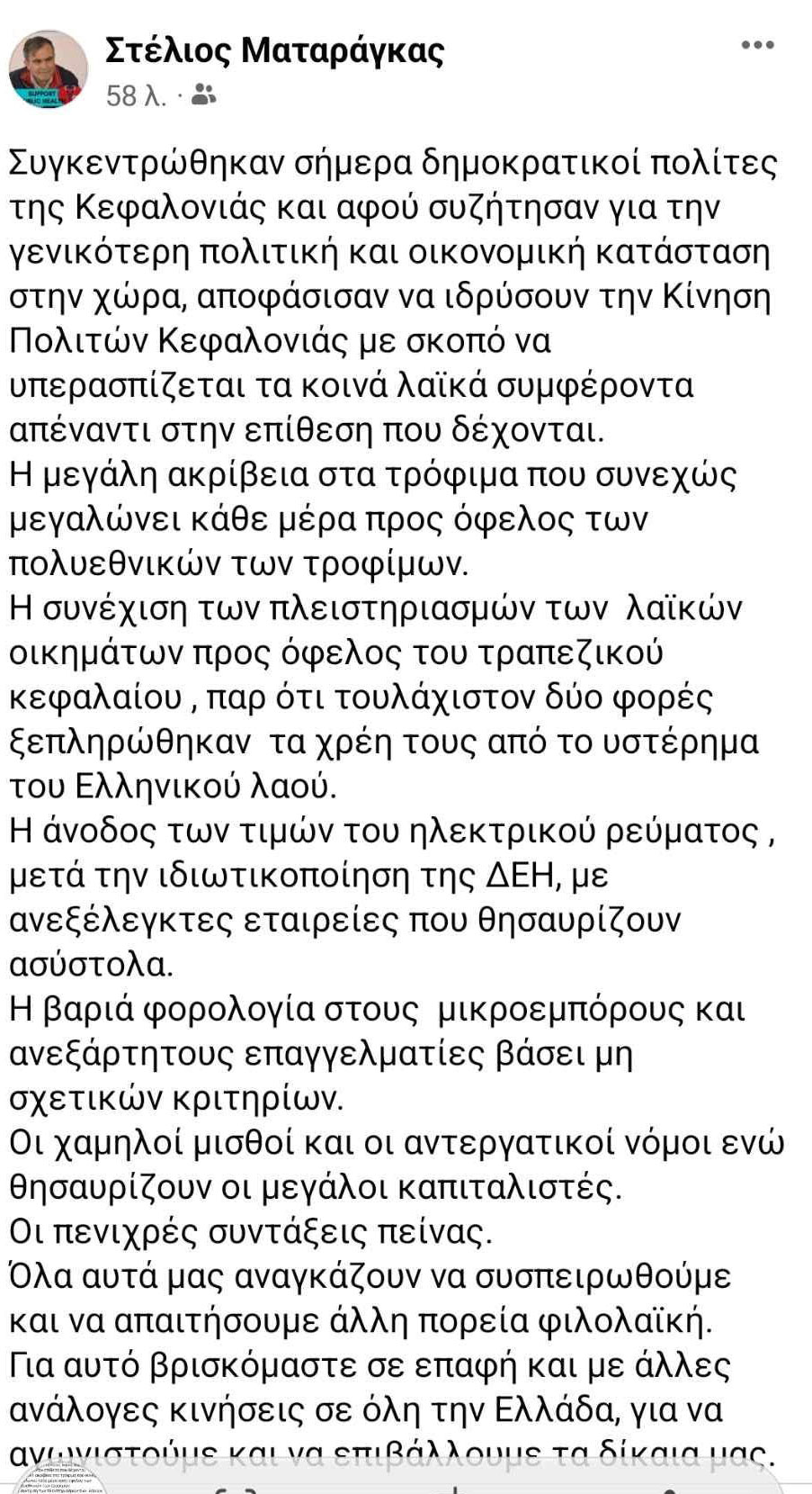 Ιδρυτική διακήρυξη Κινήματος Πολιτών Κεφαλονιάς