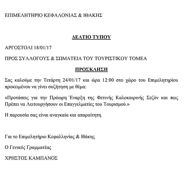 Κάλεσμα του Επιμελητηρίου στα Σωματεία του Τουριστικού τομέα.