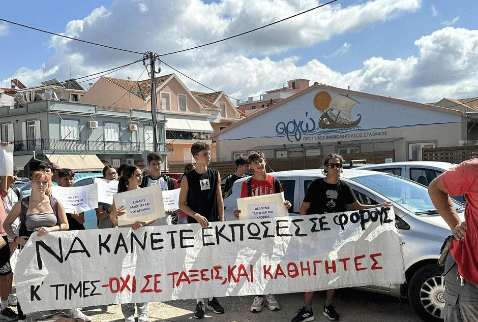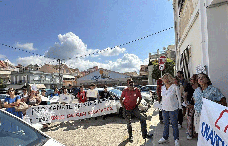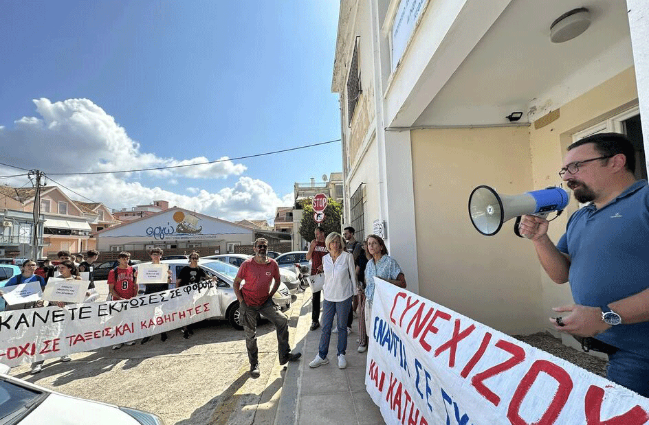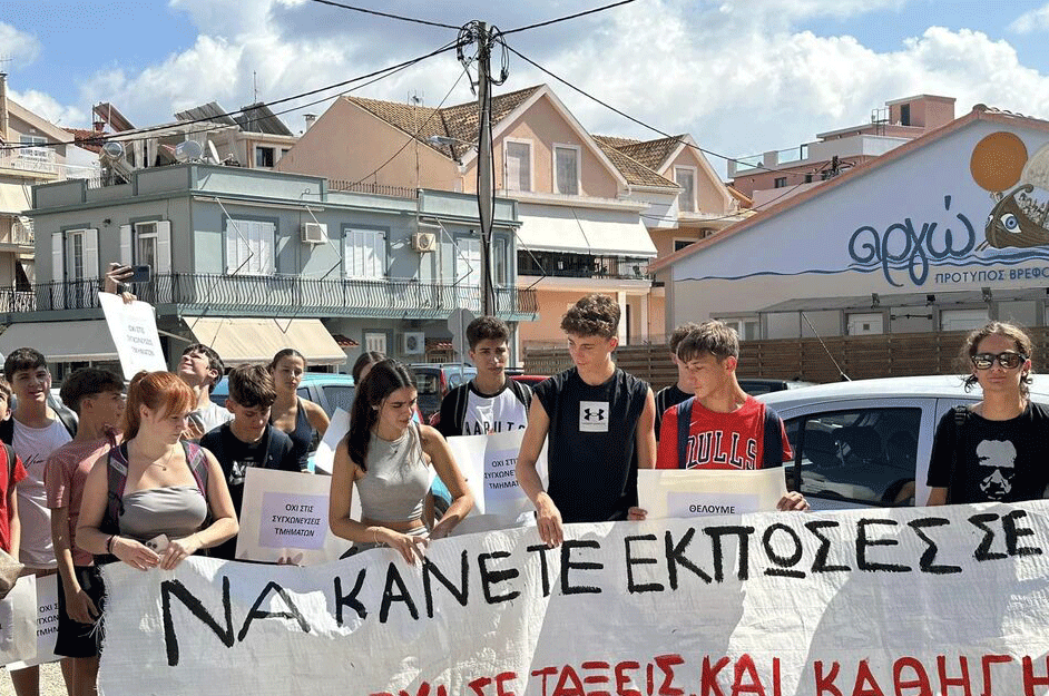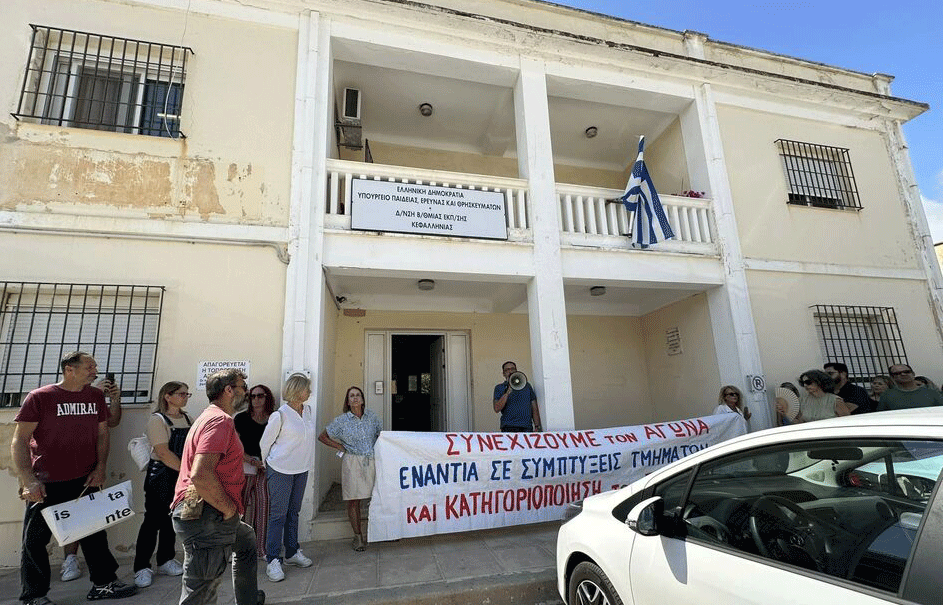 Καθηγητές, μαθητές και γονείς πραγματοποίησαν σήμερα Τετάρτη, νωρίς το μεσημέρι, δυναμική διαμαρτυρία στη Διεύθυνση Δευτεροβάθμιας Εκπαίδευσης στο Αργοστόλι, εκφράζοντας την έντονη αντίθεσή τους στη συγχώνευση τμημάτων σε Γυμνάσια και Λύκεια.