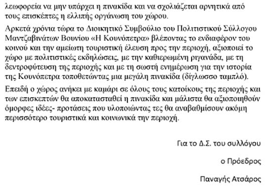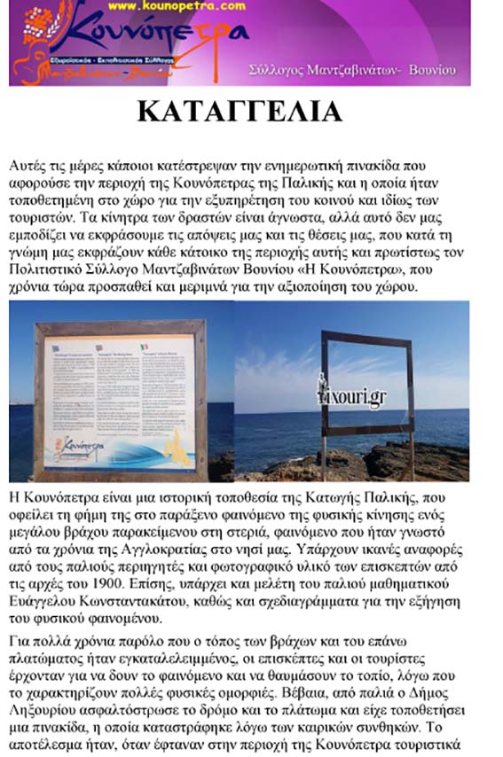 Κατέστρεψαν την ενημερωτική πινακίδα στην Κουνόπετρα
