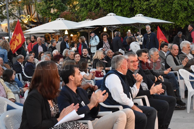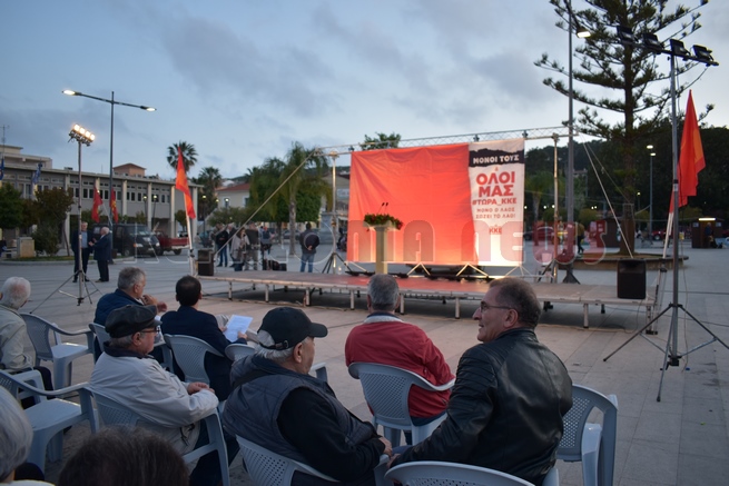 Κεντρική προεκλογική συγκέντρωση του ΚΚΕ στην Πλατεία Αργοστολίου.