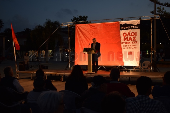 Η Κεντρική προεκλογική συγκέντρωση του ΚΚΕ στην Πλατεία Αργοστολίου, με ομιλητή τον Κώστα Παπαδάκη, μέλος της ΚΕ του Κόμματος και ευρωβουλευτής. Προλόγισε ο Γραμματέας της Τ.Ο του ΚΚΕ Διον. Αλιβιζάτος.