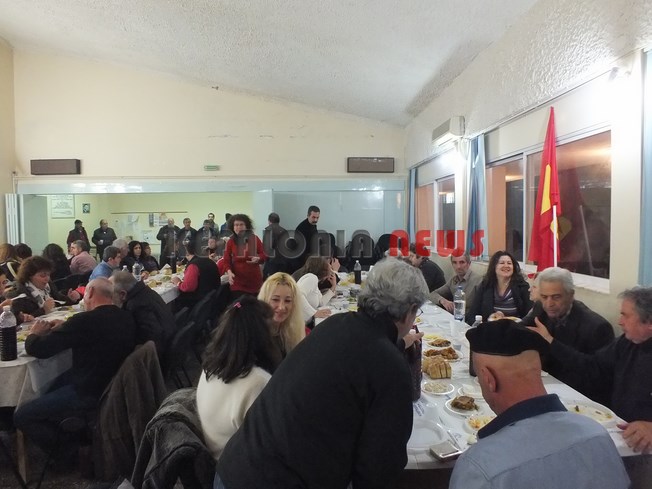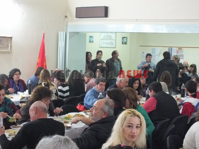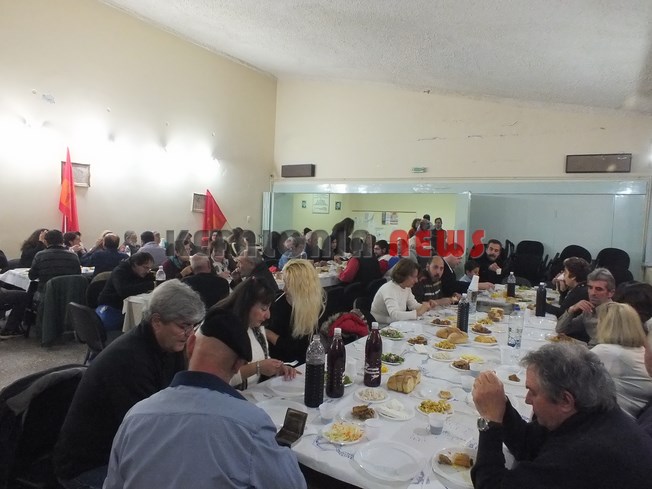 Ειδικά διαμορφωμένη η αίθουσα του Εργατικού Κέντρου δέχθηκε χθες τα μέλη και τους φίλους του ΚΚΕ για την κοπή της πίτας και στη συνέχεια τρικούβερτο γλέντι με ορχήστρα. Το κρασί έρεε άφθονο ενώ μέλη και φίλες του ΚΚΕ μαγείρεψαν αρκετά φαγητά και μεζέδες. Ήταν πράγματι κάτι το διαφορετικό αυτή η εκδήλωση – γιορτή του ΚΚΕ. Την πίτα έκοψε η Αγγελική Τσώλη Γραμματέας Τ.Ε.του ΚΚΕ η οποία ευχήθηκε καλή χρονιά και καλούς αγώνες.