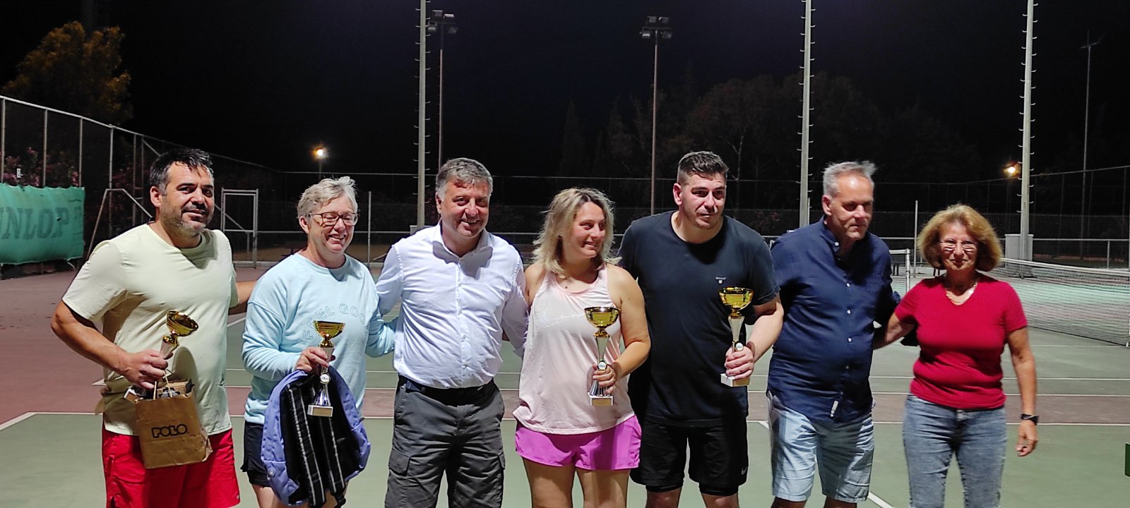 Μετά το τέλος των αγώνων, ακολούθησαν οι απονομές των κυπέλλων και το καθιερωμένο κέρασμα στους παρευρισκόμενους. Τους αθλητές βράβευσαν ο Αντιπεριφερειάρχης κ. Τραυλός Σταύρος, το μέλος του Δ.Σ. της ΕΦΟΑ κ. Μοντεσάντος Νίκος η πρόεδρος του ομίλου κ. Ανδρεόλα Ελένη και ο αθλητής του Ομίλου Αντισφαίρισης «Μίλωνα» κ. Λυγγερίδης Πέτρος.