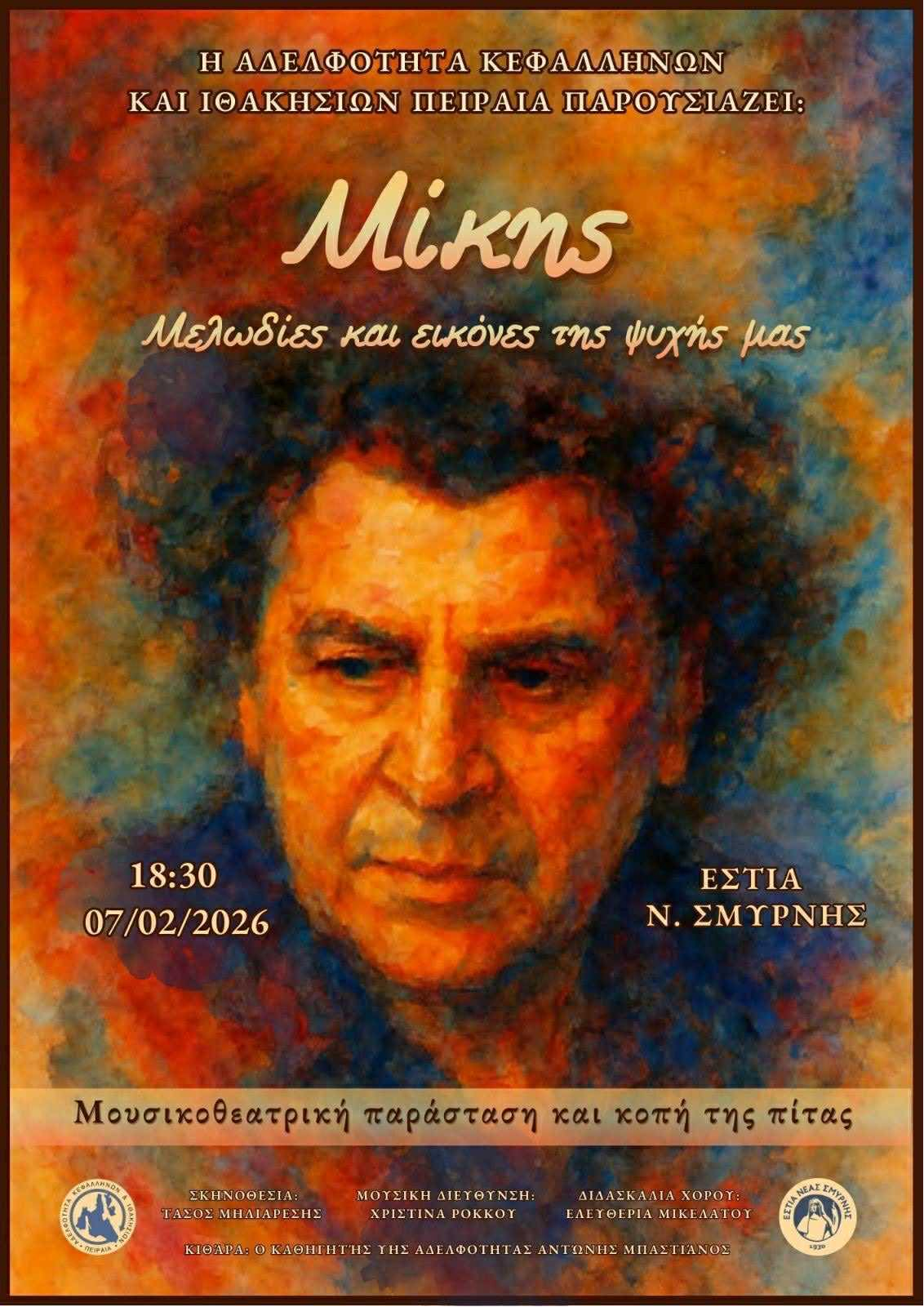 Η Αδελφότητα Κεφαλλήνων και Ιθακησίων Πειραιά σας προσκαλεί με ιδιαίτερη χαρά στη μουσικοθεατρική παράσταση