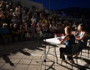 Κοσμοσυρροή χθες στην παρουσίαση του βιβλίου  «Άγγελοι επί γης» του Γιάννη Βαρούχα από τις εκδόσεις “Περισπωμένη”, στο ανοικτό αμφιθέατρο «Γερ. Σκλάβος» (μπαστούνι).