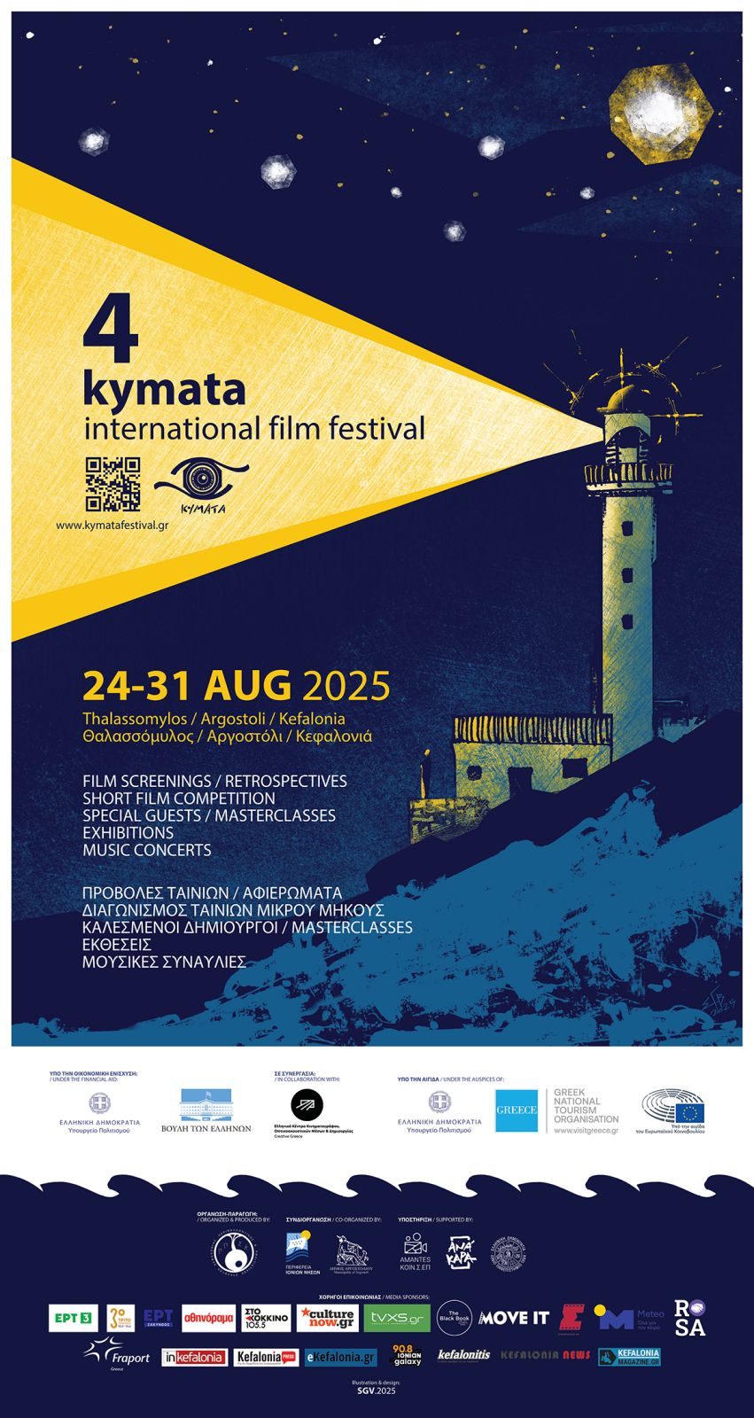 Το 4ο Διεθνές Φεστιβάλ Κινηματογράφου ΚΥΜΑΤΑ 2025 είναι η ετήσια κινηματογραφική γιορτή της Κεφαλονιάς που «παντρεύει» σινεμά, μουσική και τέχνες στον ιστορικό Θαλασσόμυλο Αργοστολίου, μετατρέποντας το νησί σε σκηνικό πολιτισμού και καλοκαιρινής απόδρασης. Με φόντο το Ιόνιο και με προβολές κάτω από τα αστέρια, φέρνει κοντά ντόπιους, ταξιδιώτες και δημιουργούς από όλο τον κόσμο. Το φεστιβάλ