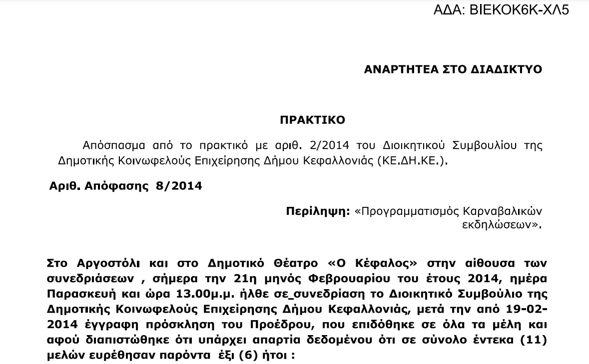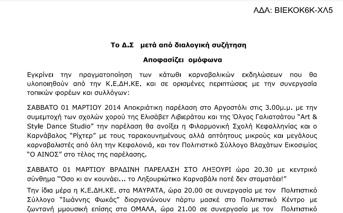 Τον Φεβρουάριο του 2014, κι ενώ είχε προηγηθεί το έντονο σεισμικό φαινόμενο που δοκίμασε τα νησιά μας, η ΚΕΔΗΚΕ συνεδρίαζε υπό τον κ. Άγγελο Κωνσταντάκη προκειμένου να αποφασίσει πώς θα κινηθεί στις αποκριές.