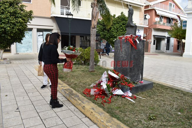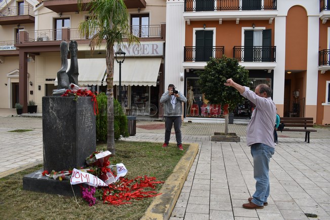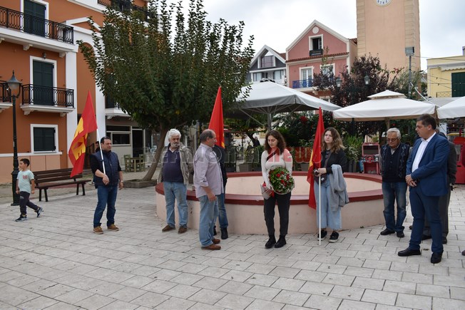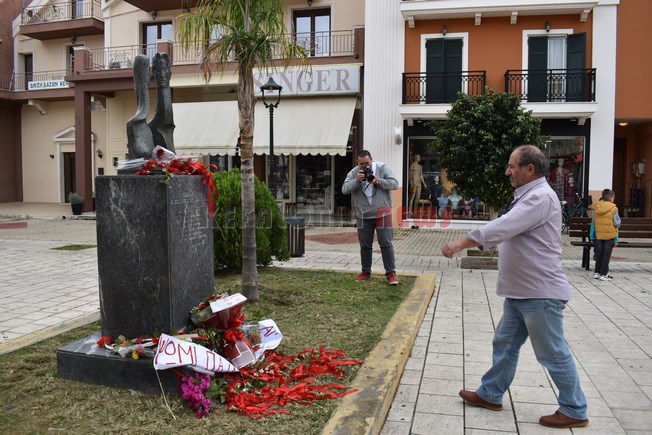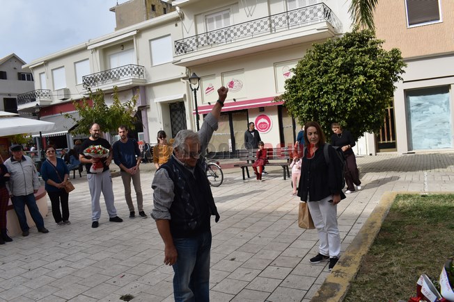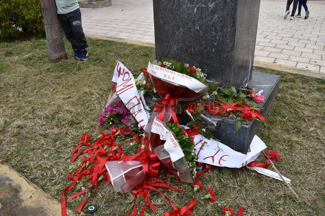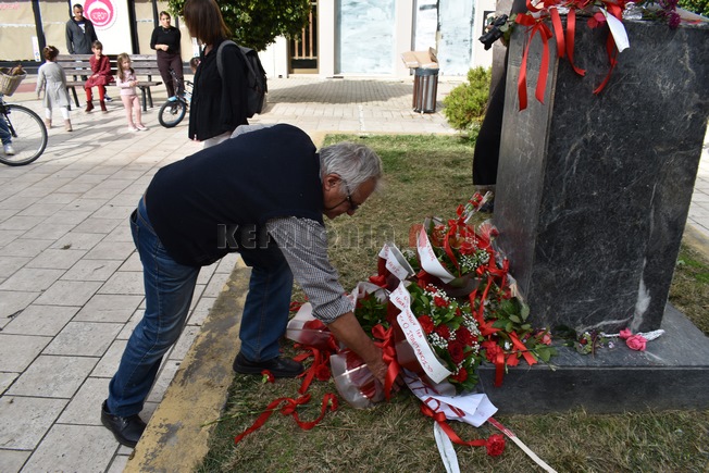 Στο μικρό μνημείου για το Πολυτεχνείο στην Πλατεία Καμπάνας κατέθεσαν λουλούδια το ΚΚΕ , η ΚΝΕ, η ΕΛΜΕ-ΚΙ το Σωματείο Συνταξιούχων κ.ά.