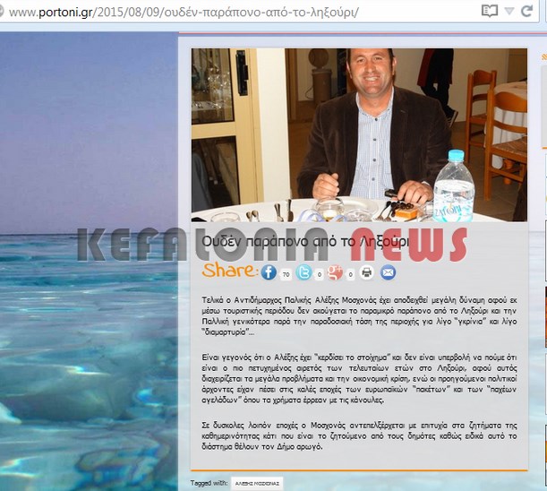 Αγαπητό μου portoni.gr με αιφνιδίασες για ακόμη μιά φορά με το πρόσφατο δημοσιεύμα σου ότι στο Ληξούρι όλα δουλεύουν ρολόι και ότι ο αγαπητός κ. Αντιδήμαρχος είναι ο πιο ικανός από όλους (;;;) !!!!