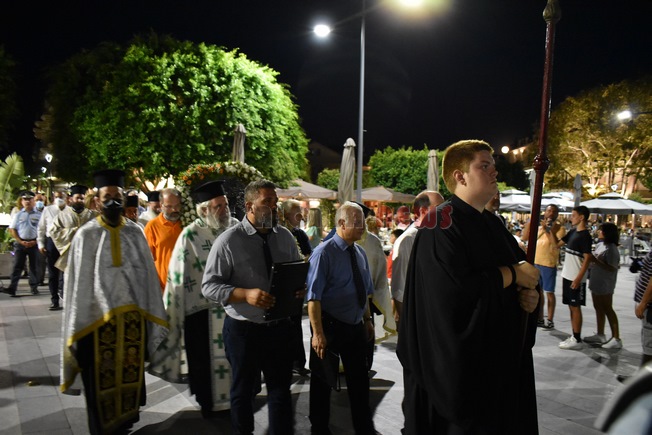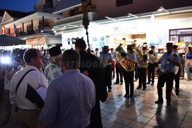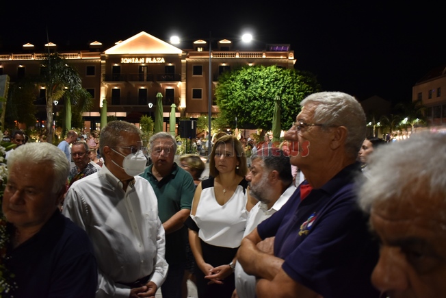 Λιτανεία προς την Πλατεία Αργοστολίου για τα θύματα των σεισμών του 1953 από τον Ι.Ν. Αγίου Σπυρίδωνος στο Αργοστόλι, Χοροστατούντος του Μητροπολίτη κ. Δημήτριο και με τη συνοδεία της Φιλαρμονικής του Δήμου Αργοστολίου «Διονύσιος Λαυράγκας» υπό την Δ/νση του Βασίλη Περλικίδη. Ακολούθησαν την Λιτανεία ο Βουλευτής κ. Π. Καππάτος, εκπρόσωπος του Αντιπεριφερειάρχη κ. Ιωάννα Μαρκέτου, ο Δήμαρχος κ. Θ. Μιχαλάτος και ο Πρόεδρος του Δ.Σ. κ. Ν. Βαλλιανάτος.