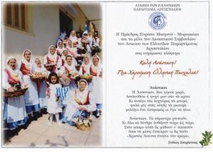 – Η ευχετήρια κάρτα του Λ.Ε.Α. φιλοτεχνήθηκε από την κα. Ειρήνη Μοσχονά-Καρκαβέλα.