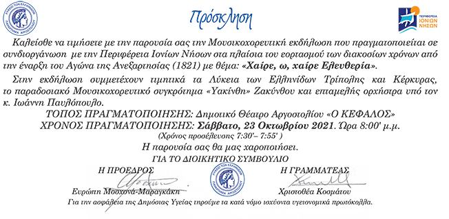 Λύκειο Ελληνίδων: Μουσικοχορευτική εκδήλωση…. “Χαίρε, ω χαίρε Ελευθεριά”..