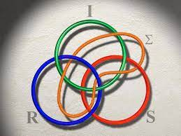 Εικόνα: Οι τρεις πρώτοι κύκλοι της απόλαυσης στον Ζακ Λακάν, Φαντασιακό, Συμβολικό και Πραγματικό I R S (Imaginaire, Realistique, Symbolique). Σύμπτωμα Σ, ο πορτοκαλί σωστικός κύκλος.