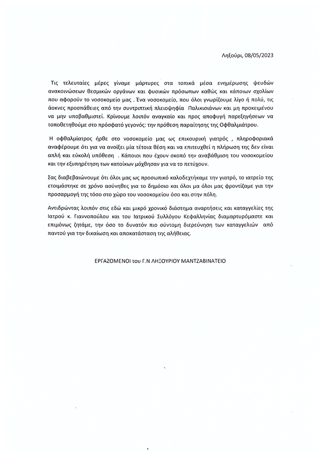 Μαντζαβινάτειο: Ζητάμε την διερεύνηση των καταγγελιών για τη δικαίωση……