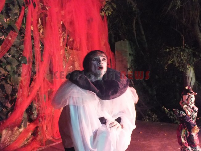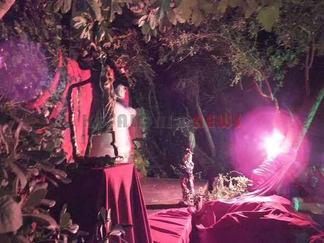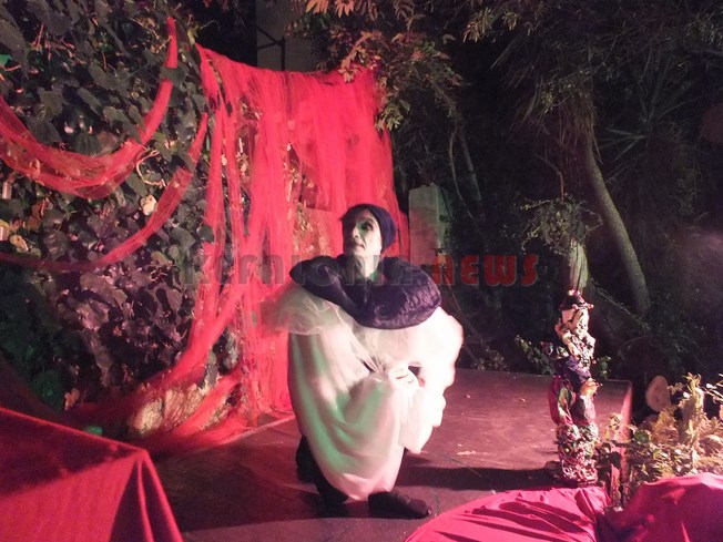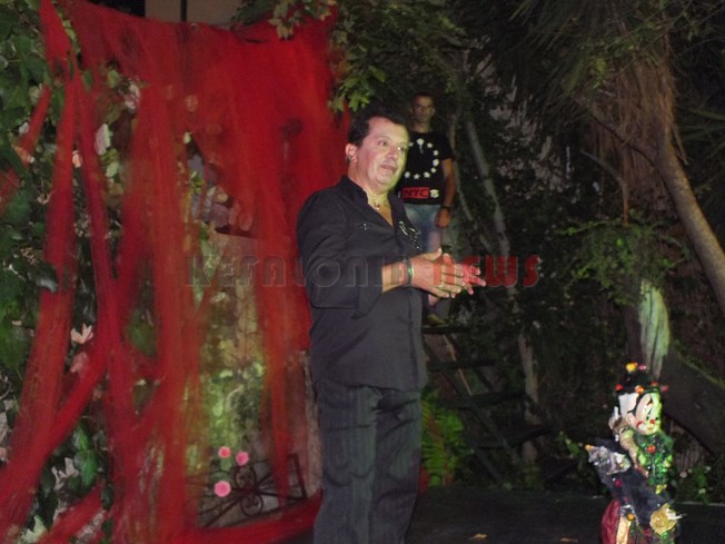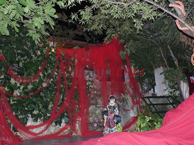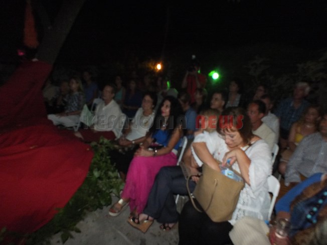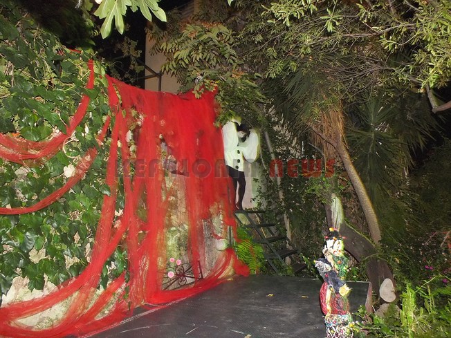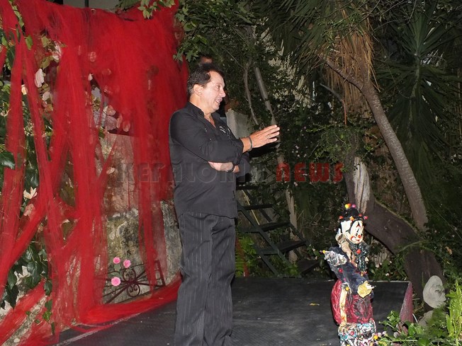 Στη συνέχεια μας παρουσίασε τις γλυπτές κούκλες του Τάκη Λουκάτου και μας προσκάλεσε να παρακολουθήσουμε στη Μωβ Σκηνή του κήπου της VILLAS ΡΟΔΟΠΗ ένα θεατρικό δρώμενο με τον Τάκη Λουκάτο., ένα μονόπρακτο του Ζάν Κοκτώ.