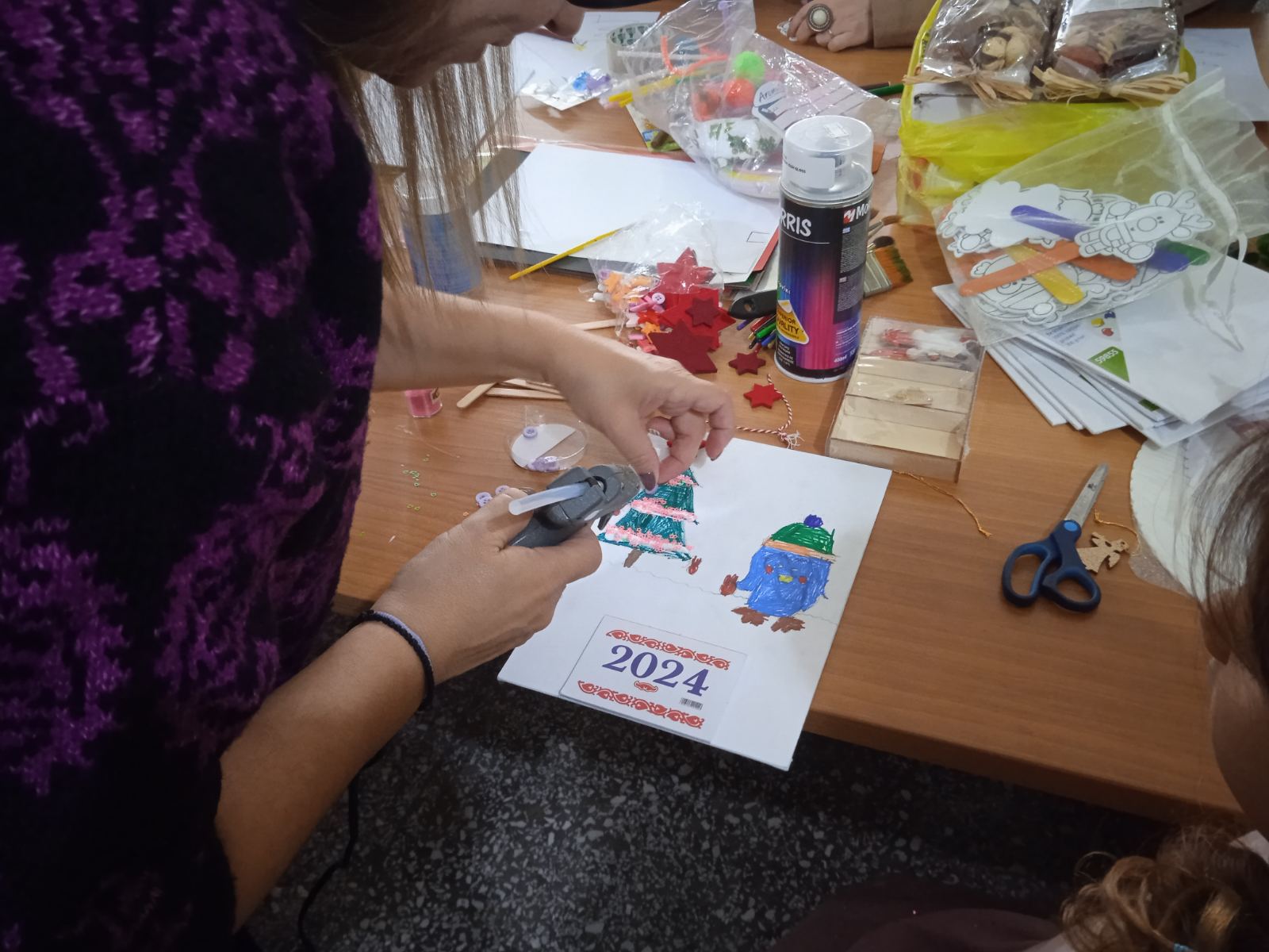 Οι μικροί – αλλά και οι πιο μεγάλοι μας φίλοι – έφτιαξαν πολλές όμορφες πρωτοχρονιάτικες κατασκευές με την καθοδήγηση του δημιουργικού πνεύματος της συναδέλφισσας Ελένης Γεωργοπούλου, διασκέδασαν με την καρδιά τους με την εφευρετική παράσταση Καραγκιόζη του Βαγγέλη Σταθάτου ενώ στο κλείσιμο της όμορφης και ζεστής εκδήλωσης τους επισκέφθηκε ένας… βιβλιόφιλος Άη Βασίλης, που μοίρασε συμβολικά δωράκια – βιβλιαράκια.