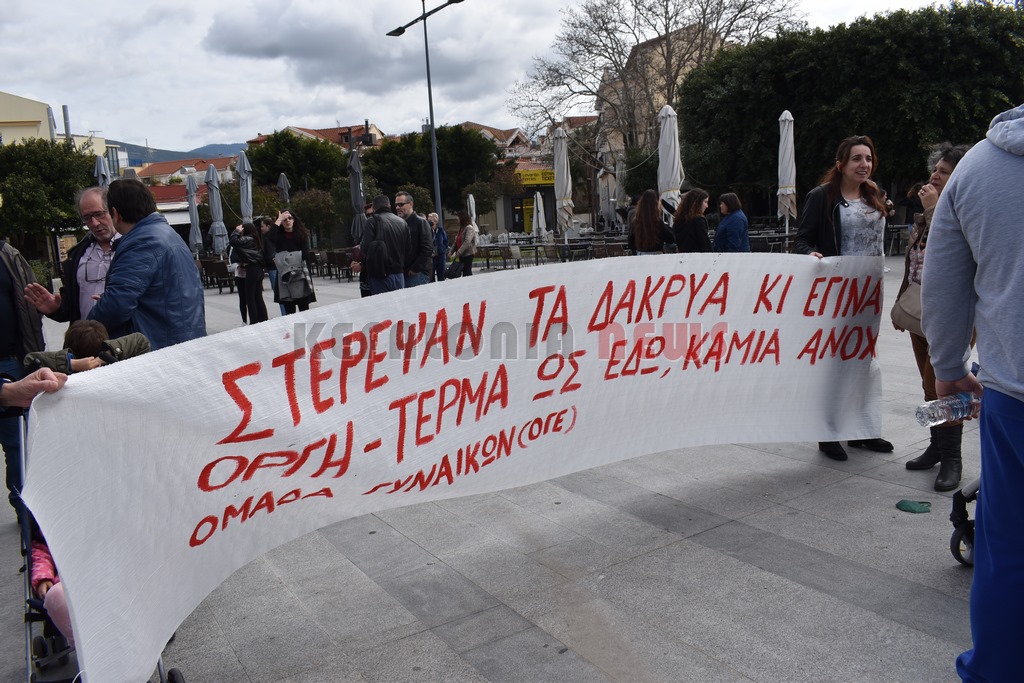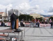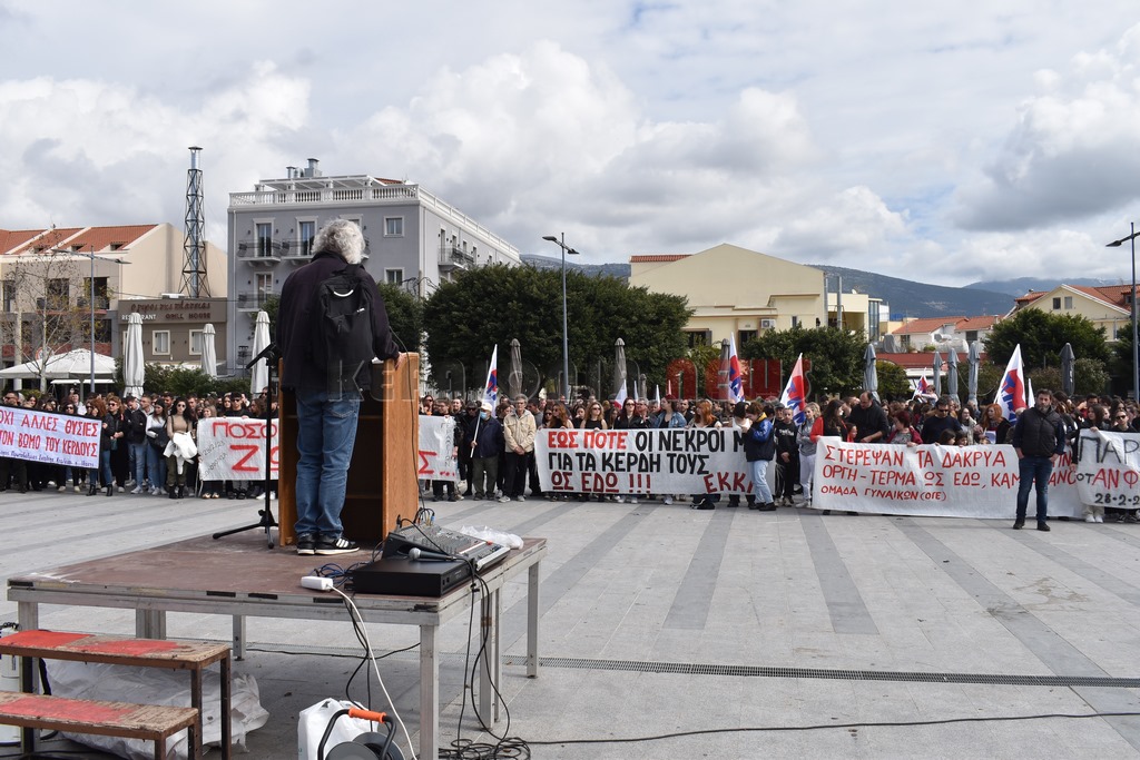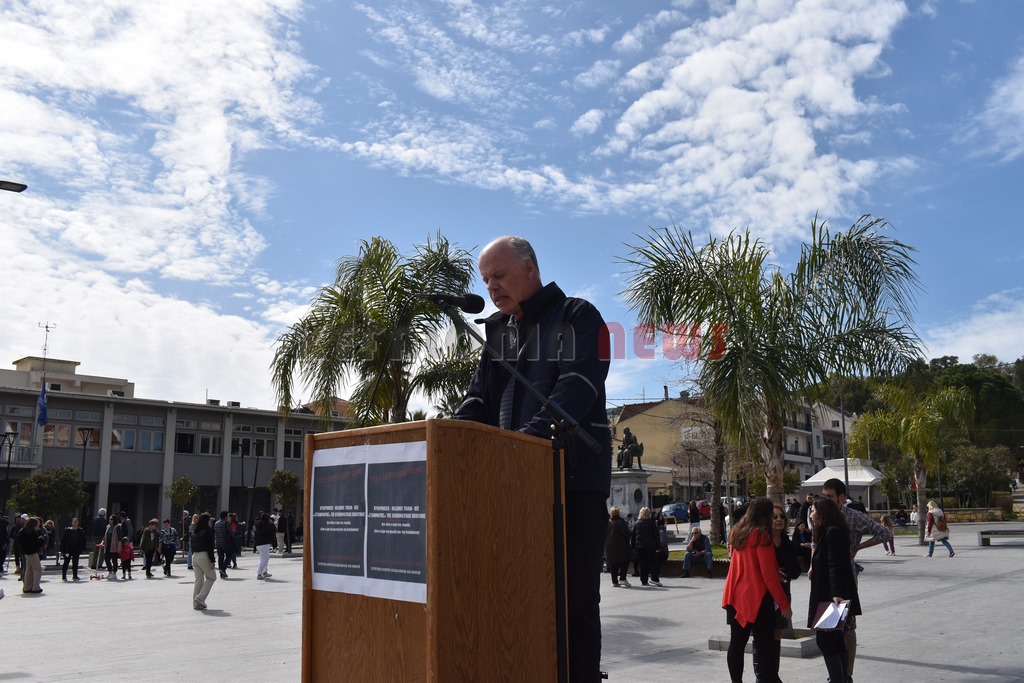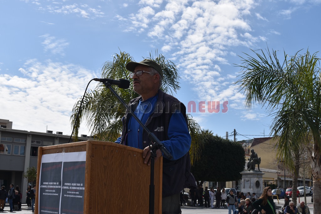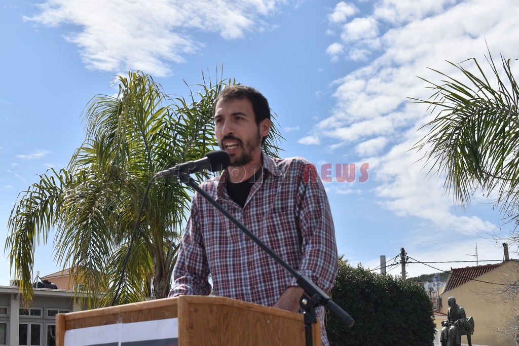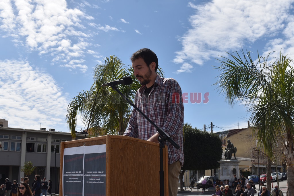 Στη συγκέντρωση μίλησαν από πολλά δεκαπενταμελή, ο Βαγγέλης Βαρδαραμάτος από την πρωτοβάθμια εκπαίδευση, ο Μάκης Δαναλάτος  από το Σωματείο Ιδιωτικών Υπαλλήλων και από πολλούς συλλόγους. Τελική  ομιλία από τον Πρόεδρο του Εργατικού Κέντρου Σπύρο Καμπίτση. Ακολούθησε πορεία μέσω της Λεωφόρου Βεργωτή. Εκεί ήταν και αντιπροσωπεία του ΣΥΡΙΖΑ.