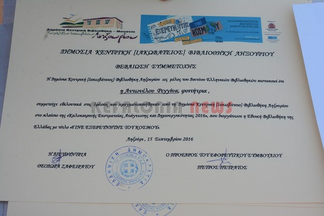 Και όλα αυτά στα πλαίσια της δράσης «Καλοκαιρινής Εκστρατείας Ανάγνωσης και Δημιουργικότητας 2016», το θερινό πρόγραμμα που συντόνισε η Εθνική Βιβλιοθήκη Ελλάδας, με αποκλειστικό δωρητή διοργάνωσης το «Ίδρυμα Σταύρος Νιάρχος» και τη συμμετοχή 125 Βιβλιοθηκών της χώρας μας.
