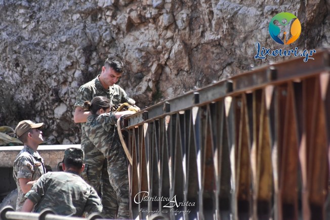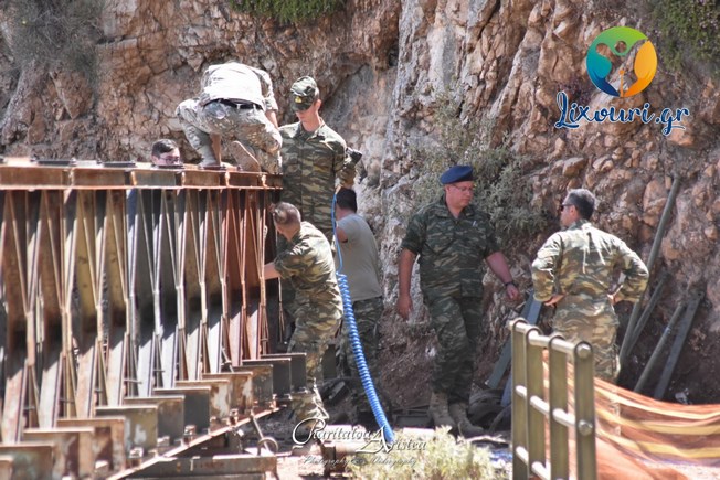 Μιά βδομάδα σχεδόν χρειάστηκε, από την ημέρα που έφτασε στην Κεφαλονιά η στρατιωτική γέφυρα μπέιλι, να τοποθετηθεί και να συναρμολογηθεί από το αρμόδιο τμήμα του Ελληνικού Στρατού, στο “Χειμωνικό”. Σήμερα, το “κούμπωμα” των κομματιών της γέφυρας, συνεχίστηκε με γοργούς ρυθμούς και με την στήριξη των Γερανών του Βανδώρου. Λίγο έμεινε ακόμα…“Προσωρινά” θα παραμείνει η γέφυρα για να εξυπηρετήσει τους Κεφαλονίτες, μέχρι να ολοκληρωθεί η γραφειοκρατία και να ξεκινήσει η κατασκευή της νέας γέφυρας. Κι ως γνωστόν, κάτι που ξέρουμε καλά στην Παλλική, θα ακολουθήσουν πολλά χρόνια μέχρι να φτάσουμε να έχουμε μιά νέα γέφυρα… Άξιες θαυμασμού και συγχαρητηρίων και οι 4 γυναίκες που συμμετέχουν στην τοποθέτηση της γέφυρας. “Μόλις βγήκαν από την Σχολή” μας ενημέρωσαν. Άξιες! Σε έναν χώρο, ανδροκρατούμενο, όπως ο Στρατός, θέλει θέληση, υπομονή και τεράστια αντοχή για να ανταποκριθείς στις υποχρεώσεις σου.