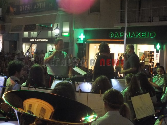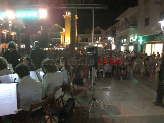 Συναυλία στην Πλατεία Καμπάνας η Φιλαρμονική Αργοστολίου της ΚΕΔΗΚΕ «Διονύσιος Λαυράγκας», υπό την δ/νση του Βασίλη Περλικίδη, μια διαφορετική συναυλία αφιέρωμα στο ελληνικό τραγούδι. Τραγούδησαν ο Δημ. Αραγιάννης και η Ματίνα Παπαγεωργίου. Γεμάτη η Πλατεία Καμπάνας από κόσμο, όπου λειτουργούσε παράλληλα και η έκθεση των Κεφαλονίτικων κρασιών.