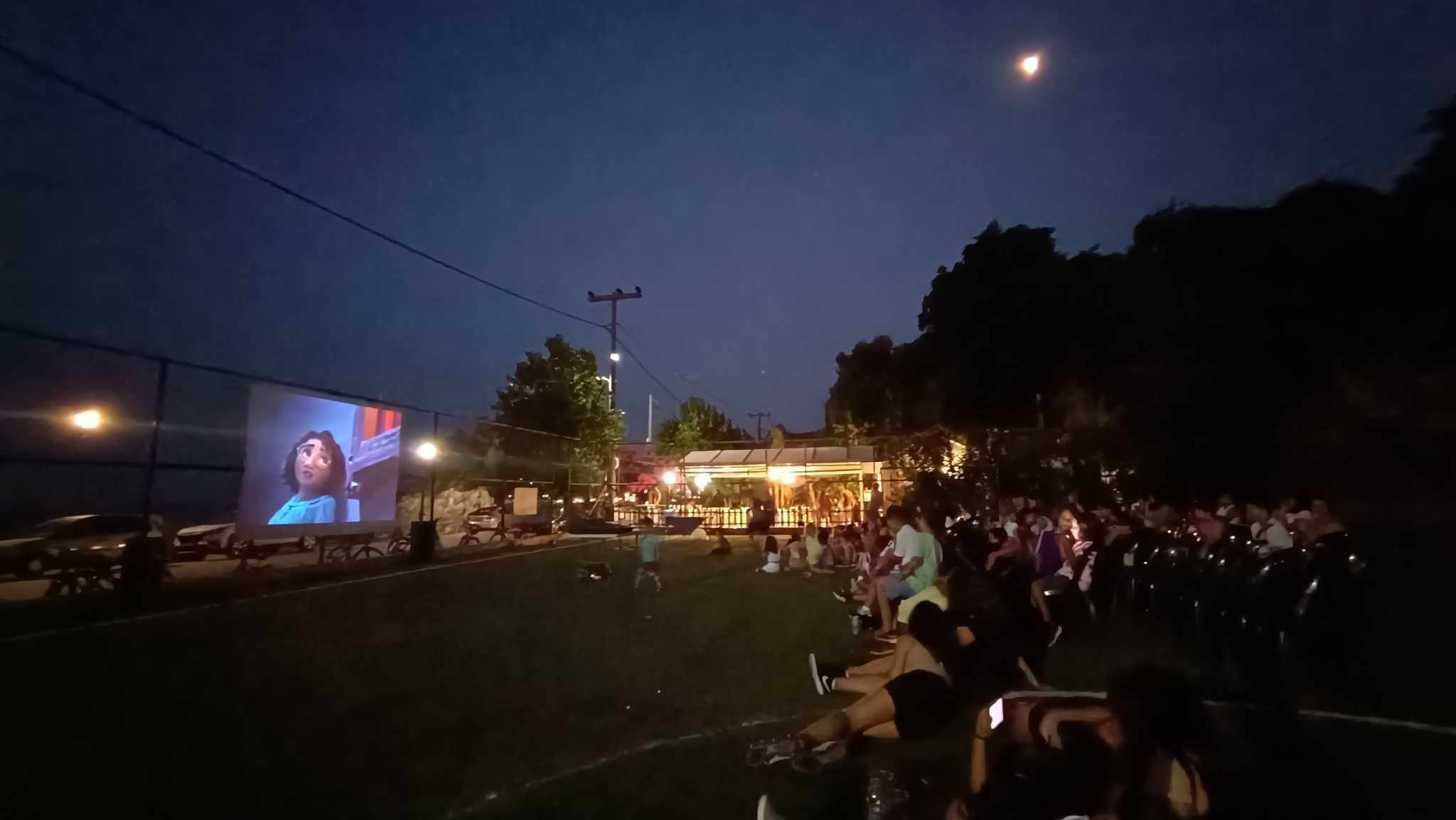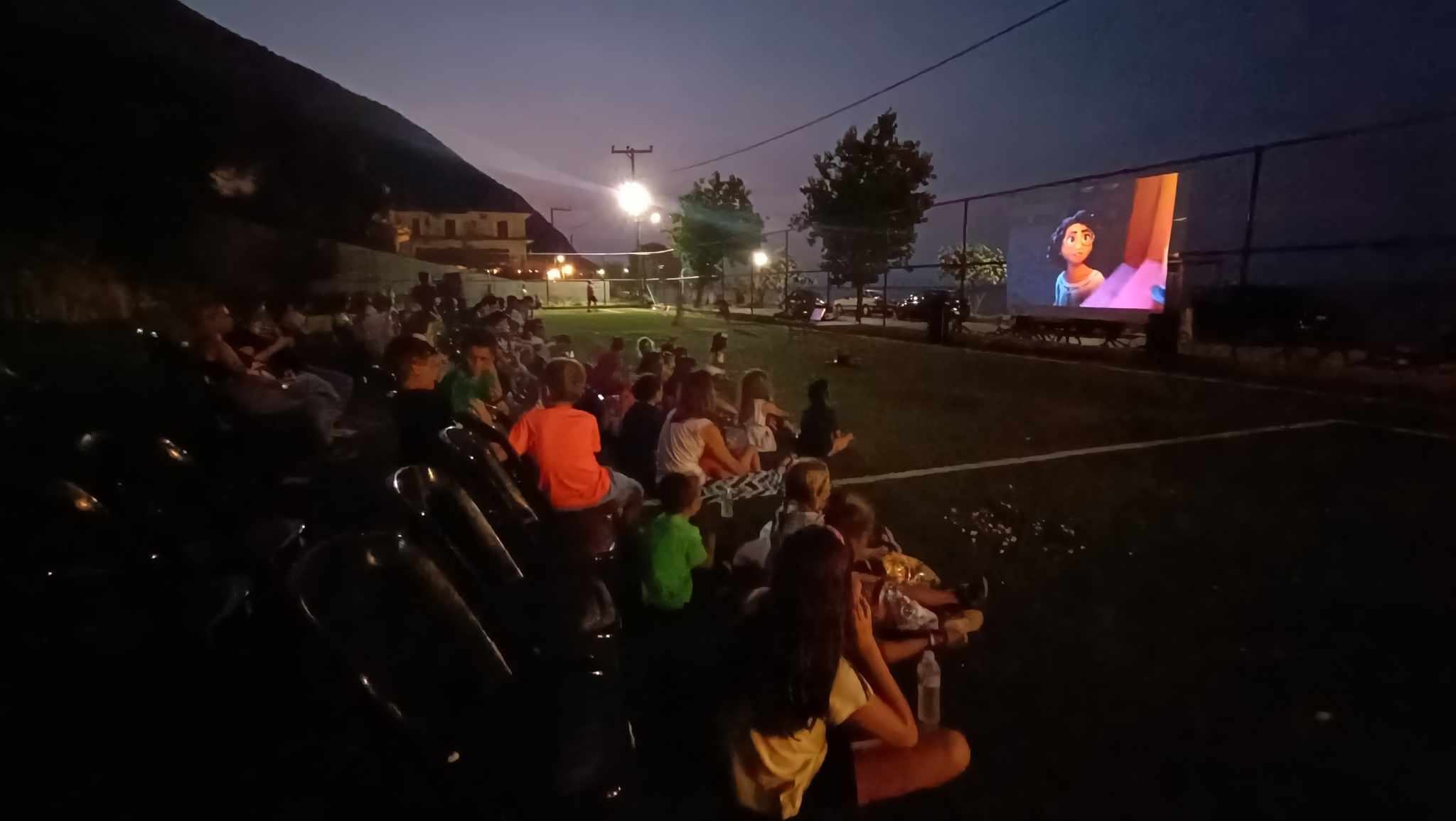 Η προβολή της παιδικής κινηματογραφικής ταινίας της Ντίσνεϊ “Ενκάντο” έγινε προς μεγάλης χαράς των παιδιών, γονέων και των υπολοίπων σινεφίλ στο χώρο του γηπέδου 5Χ5 δίπλα από την Παραλία Αράγια του Πόρου.