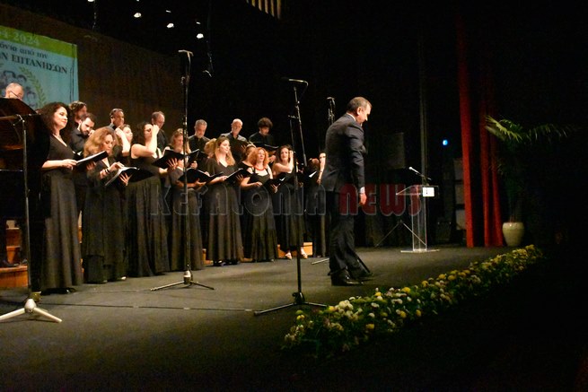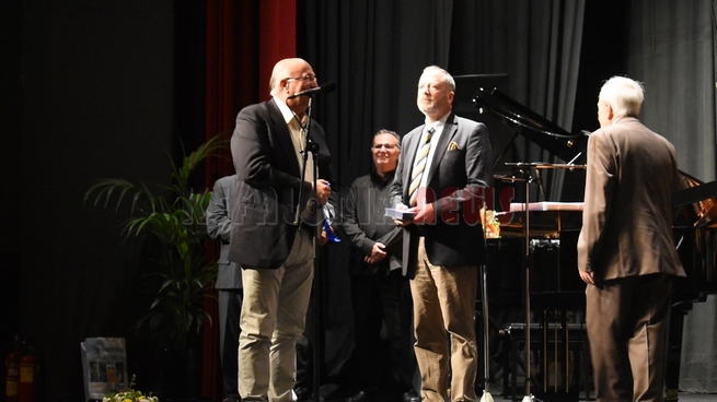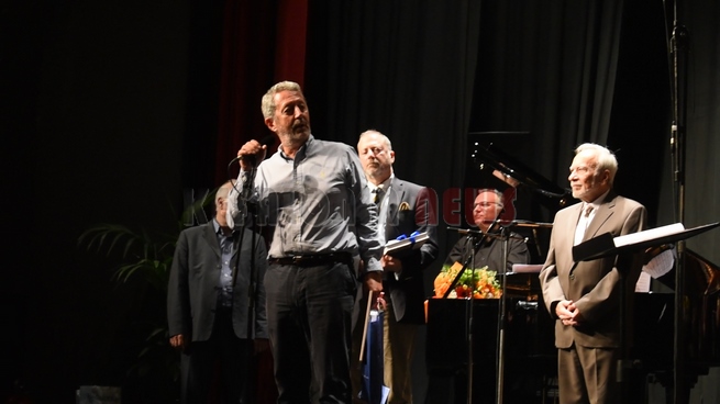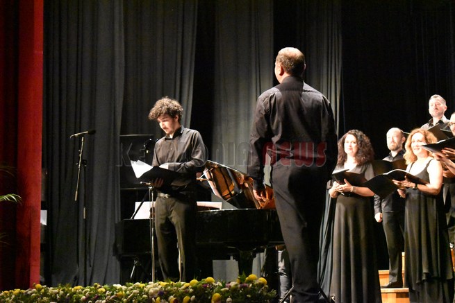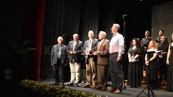 Ο αντιπεριφερειάρχης κ. Κουρής και ο αντιδήμαρχος κ. Τσιλιμιδός έδωσαν στο τέλος στον υπεύθυνο Διευθυντή των Μουσικών Συνόλων της ΕΡΤ κ. Μιχάλη Δημητρακάκο αναμνηστικά δώρα.