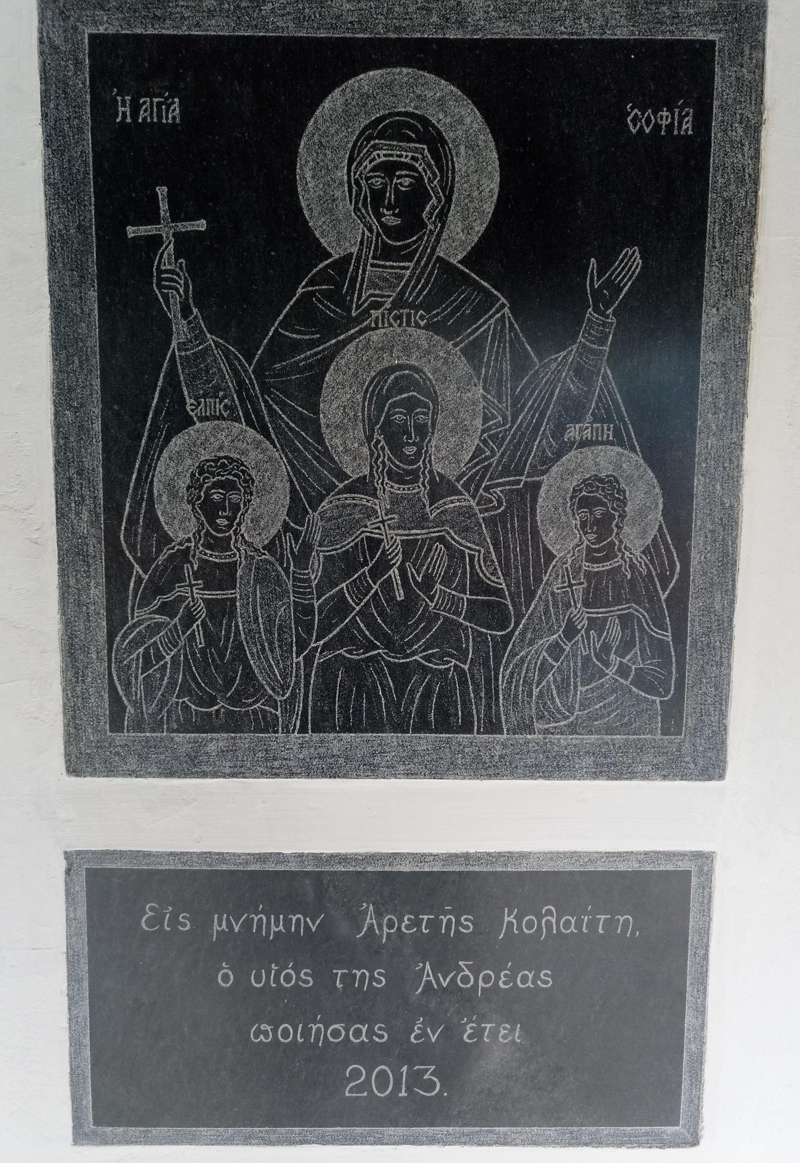 Με αφορμή την σημερινή γιορτή της Αγίας Σοφίας και των θυγατέρων της Πίστης, Ελπίδας και Αγάπης οι οποίες μαρτύρησαν επί αυτοκράτορα Αδριανού (76 – 138 μ.Χ.) αναρωτήθηκα (και πάλι) για την απουσία ενός ταπεινού εικονοστασίου – προσκυνηταριού δρόμου στον παραθαλάσσιο Οικισμό της Αγίας Σοφίας – Ερίσου.